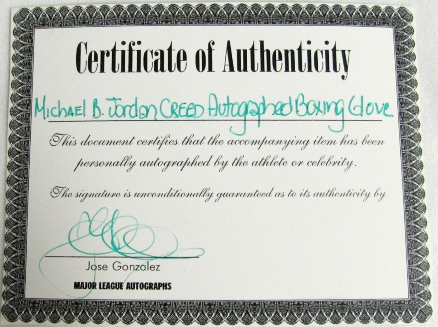 EVERLAST BLACK BOXING GLOVE with COA by MAJOR LEAGUE AUTOGRAPHS