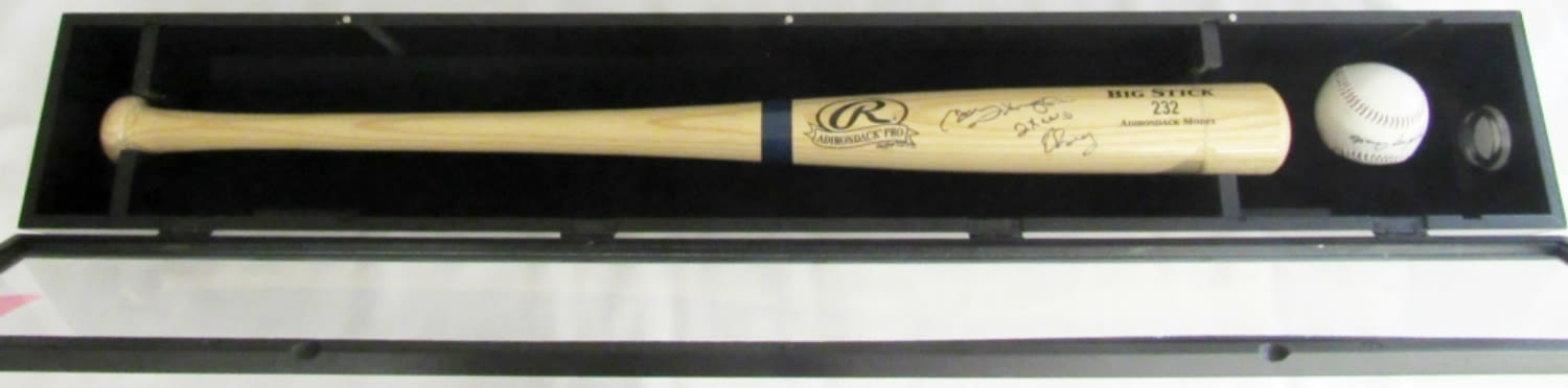 RAWLING BAT “BIG STICK” & PIRATES COMMEM BALL – BOTH SIGNED – NO COA – NICE DISPLAY CASE