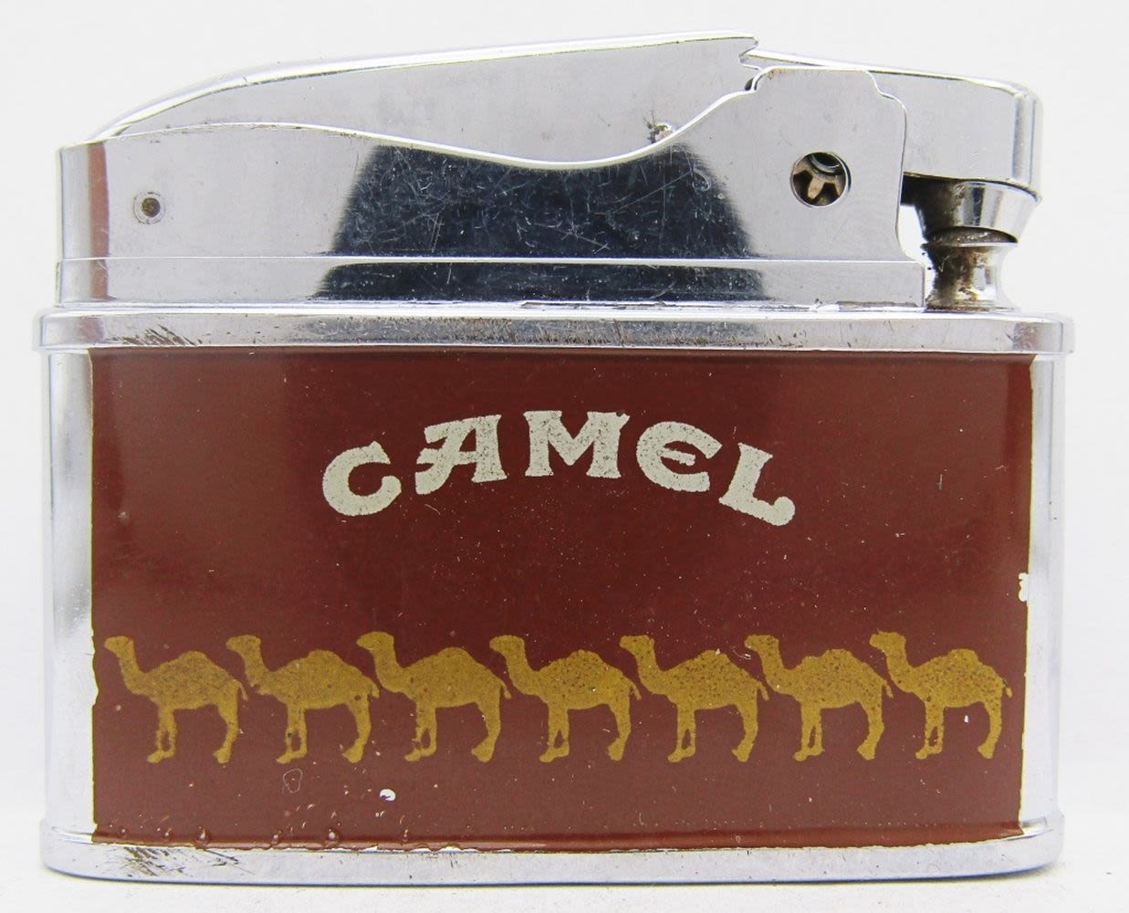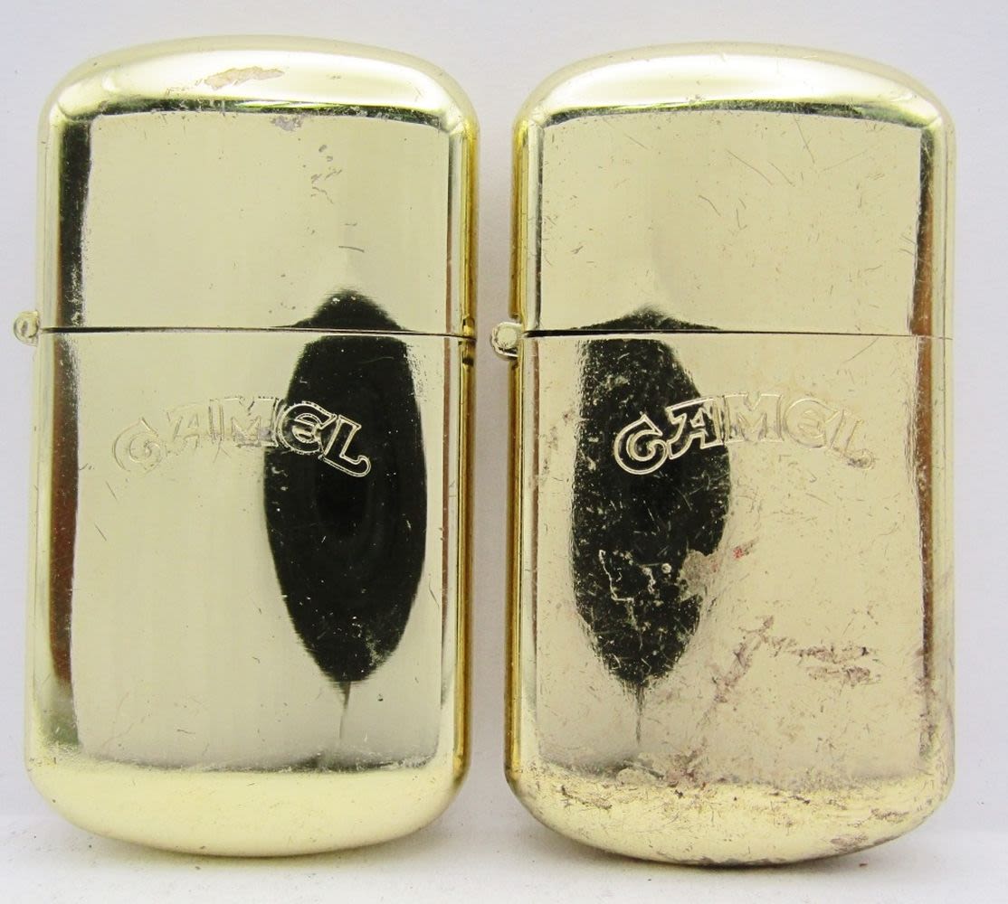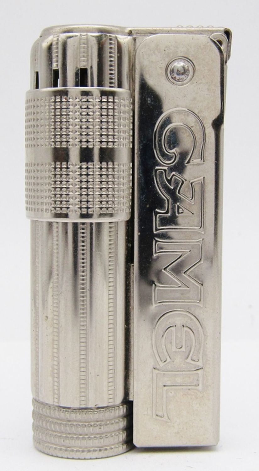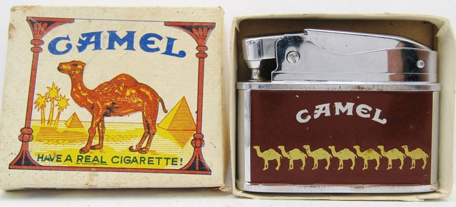 2 Bronze Camel Joe Refillable Lighters (1 Unfired), 1 Silver Tone Camel Joe Refillable Lighter, Camel Joe’s Diner Open 24 Hours High Polish Chrome, Firebird Camel Lighter, Sarome Swallow Advertising Camel Lighter (For