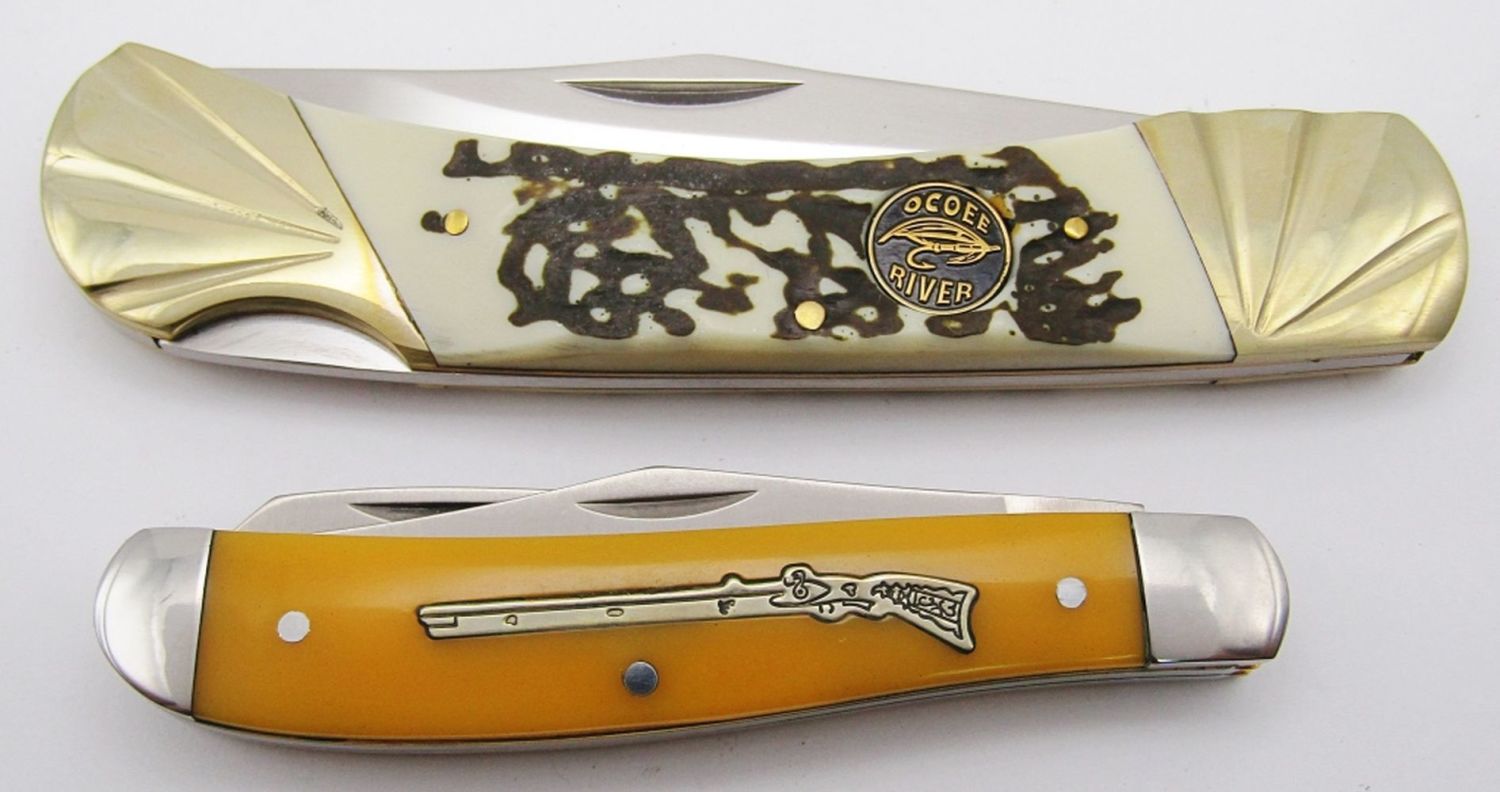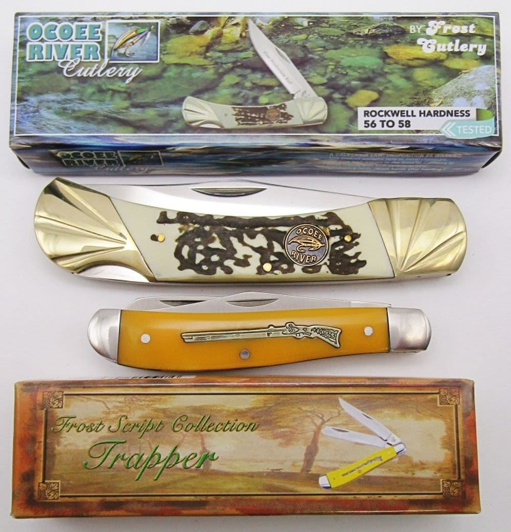 Ocoee River Bear Claw & Frost Script Collection Yellow Trapper. Both New In Box!