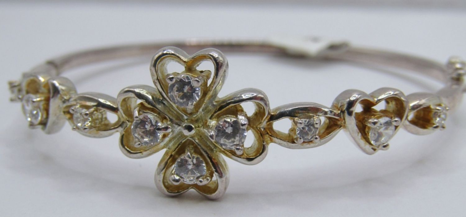 10 dwt, 6 1/2in bangle opens up with a clasp and has 925 stamped