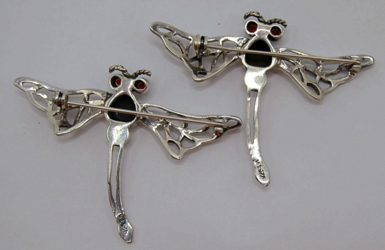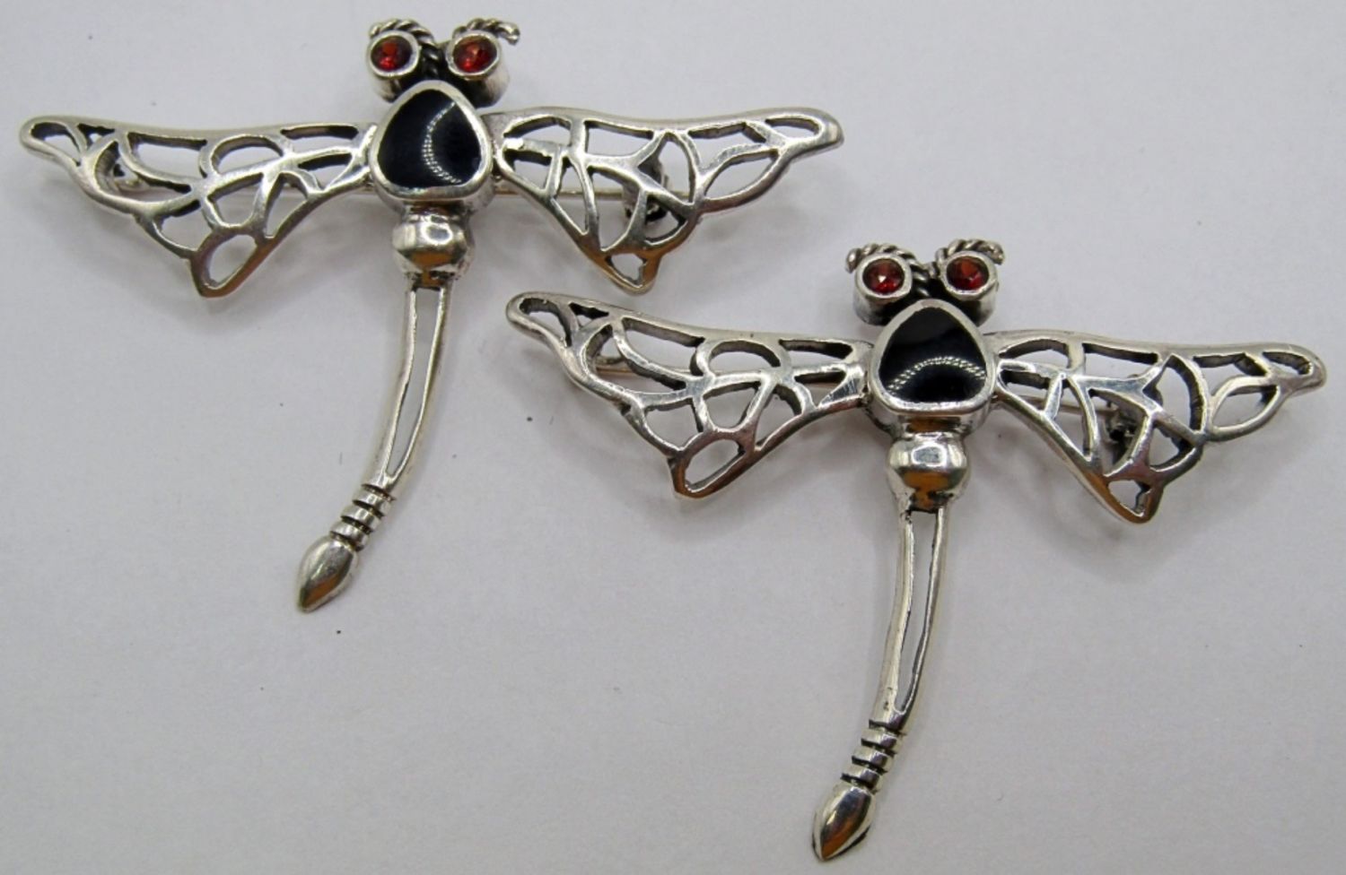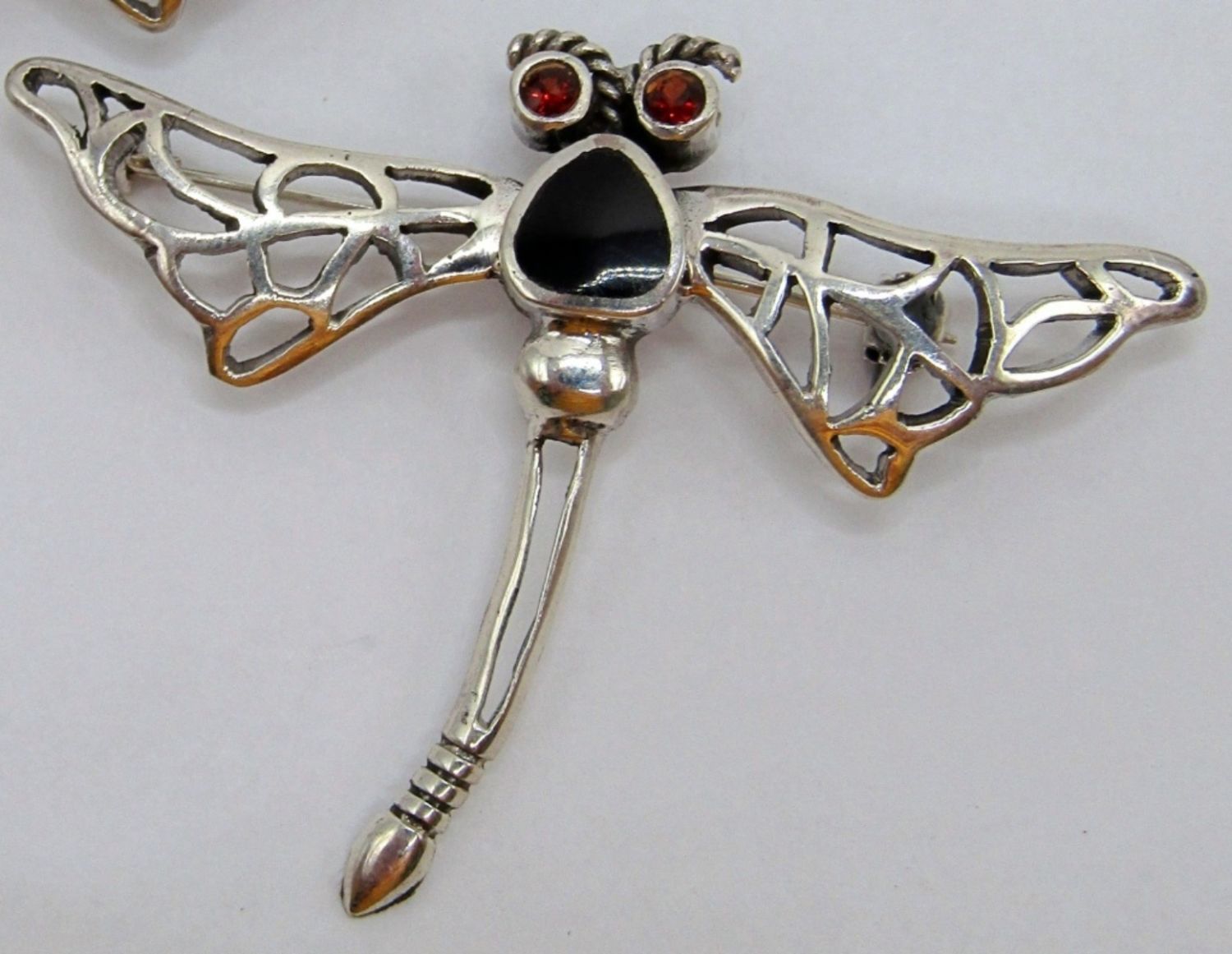 7.5dwt, 2in in length, has black onyx inlay stone and red stones for the eyes, stamped 925 TH