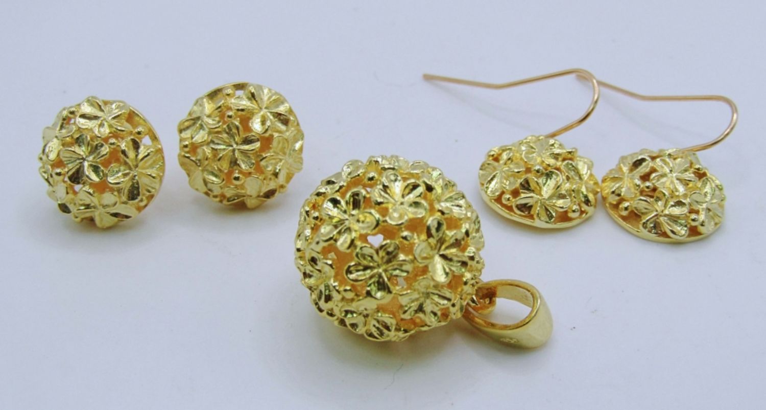 10dwt, 1 pair are studs and the other drop earrings both have 925 stamped, Small Pendant also stamped 925