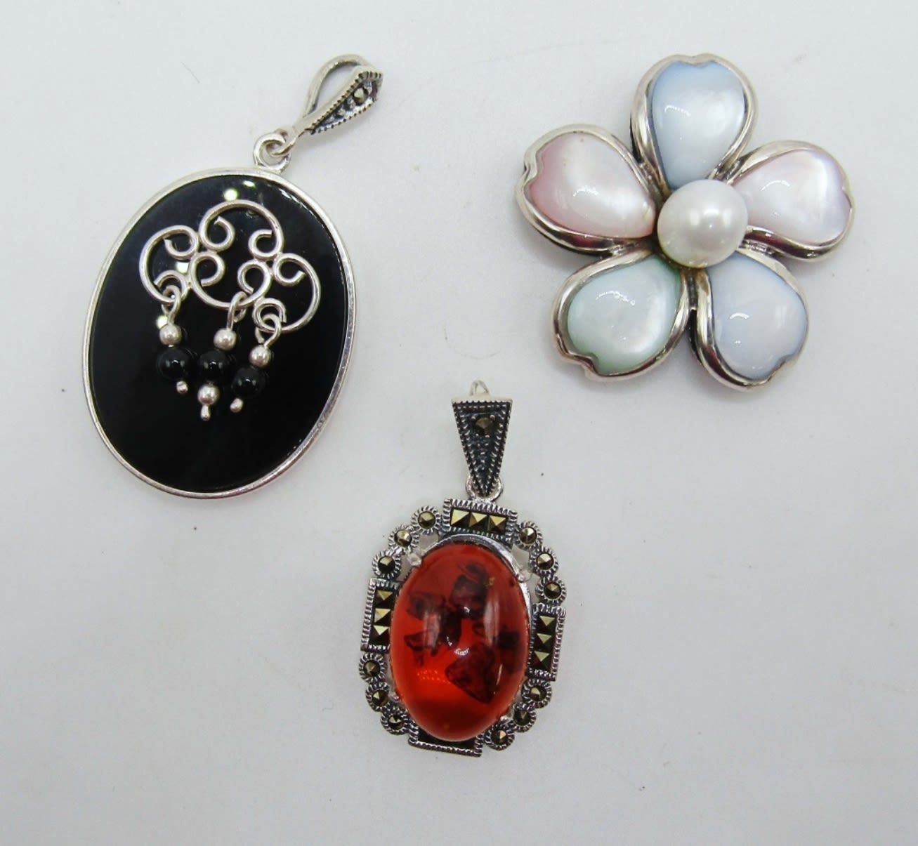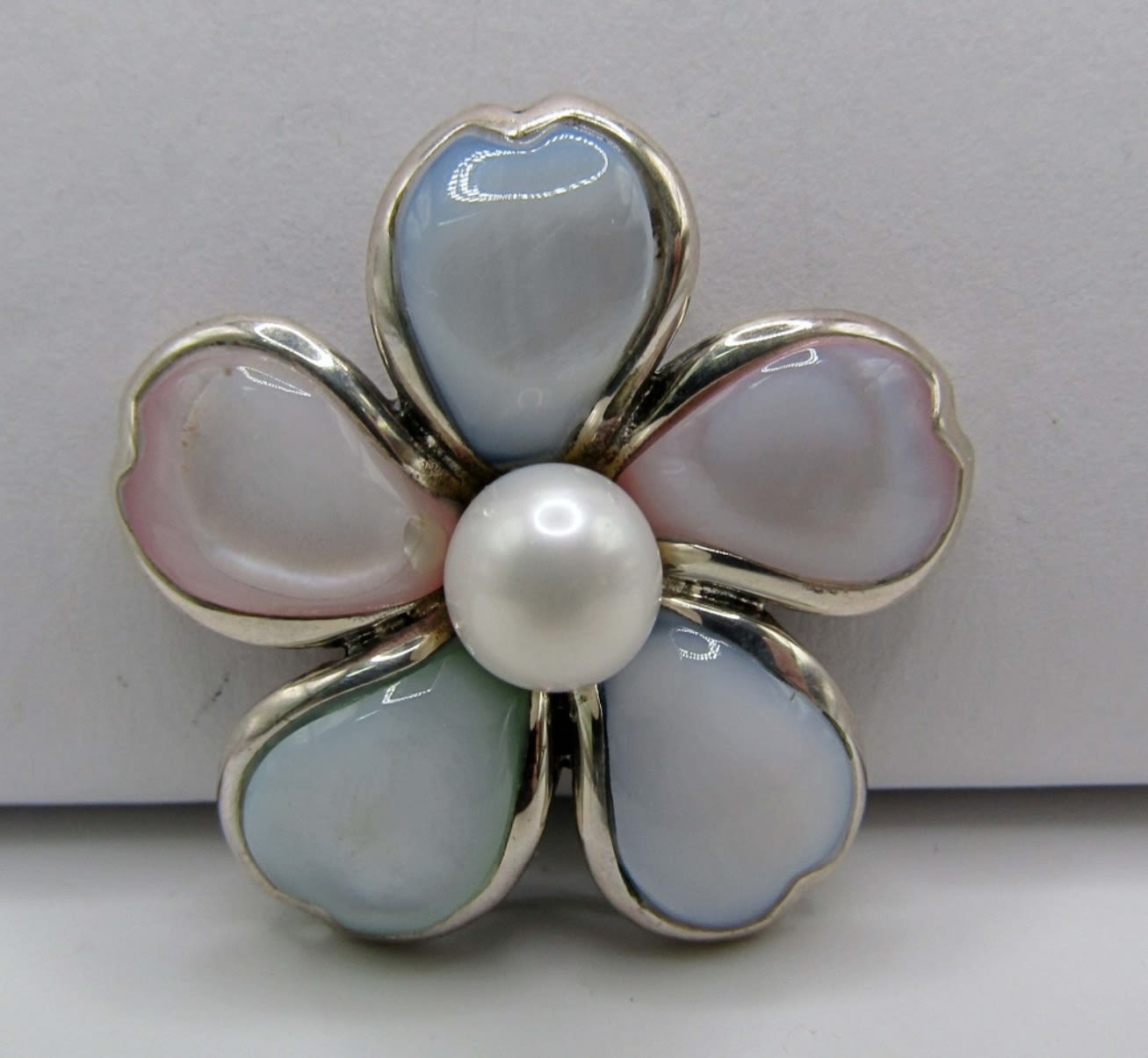 (1)FLOWER WITH LUCITE AND PEARL CENTER-TOTAL 13 DWT