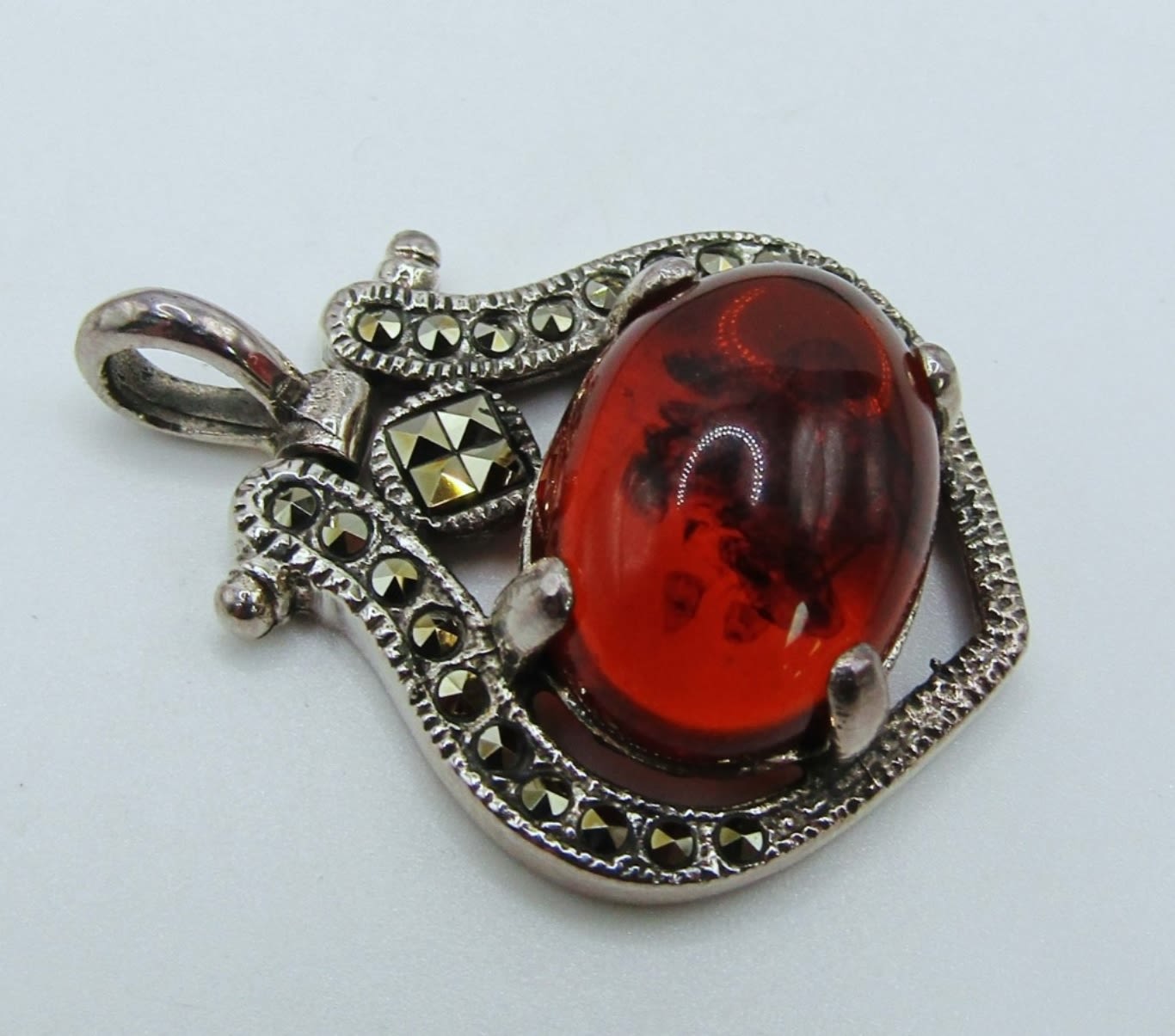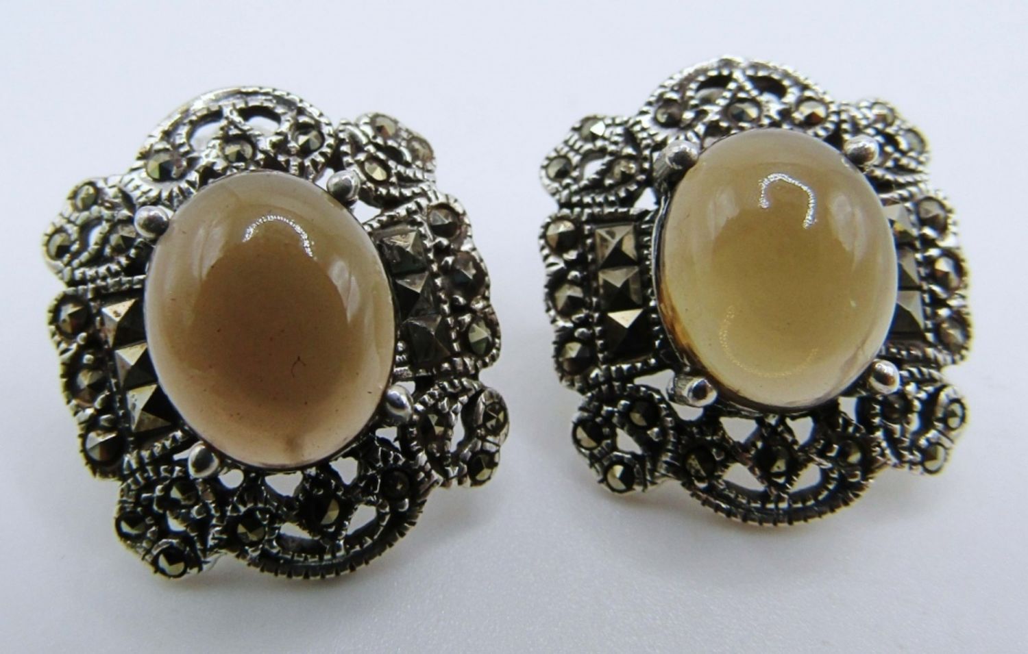 WITH BALTIC AMBER CENTER & (1)PAIR OF STUD EARRINGS WITH GRAY CENTER STONE-TOTAL 8 DWT