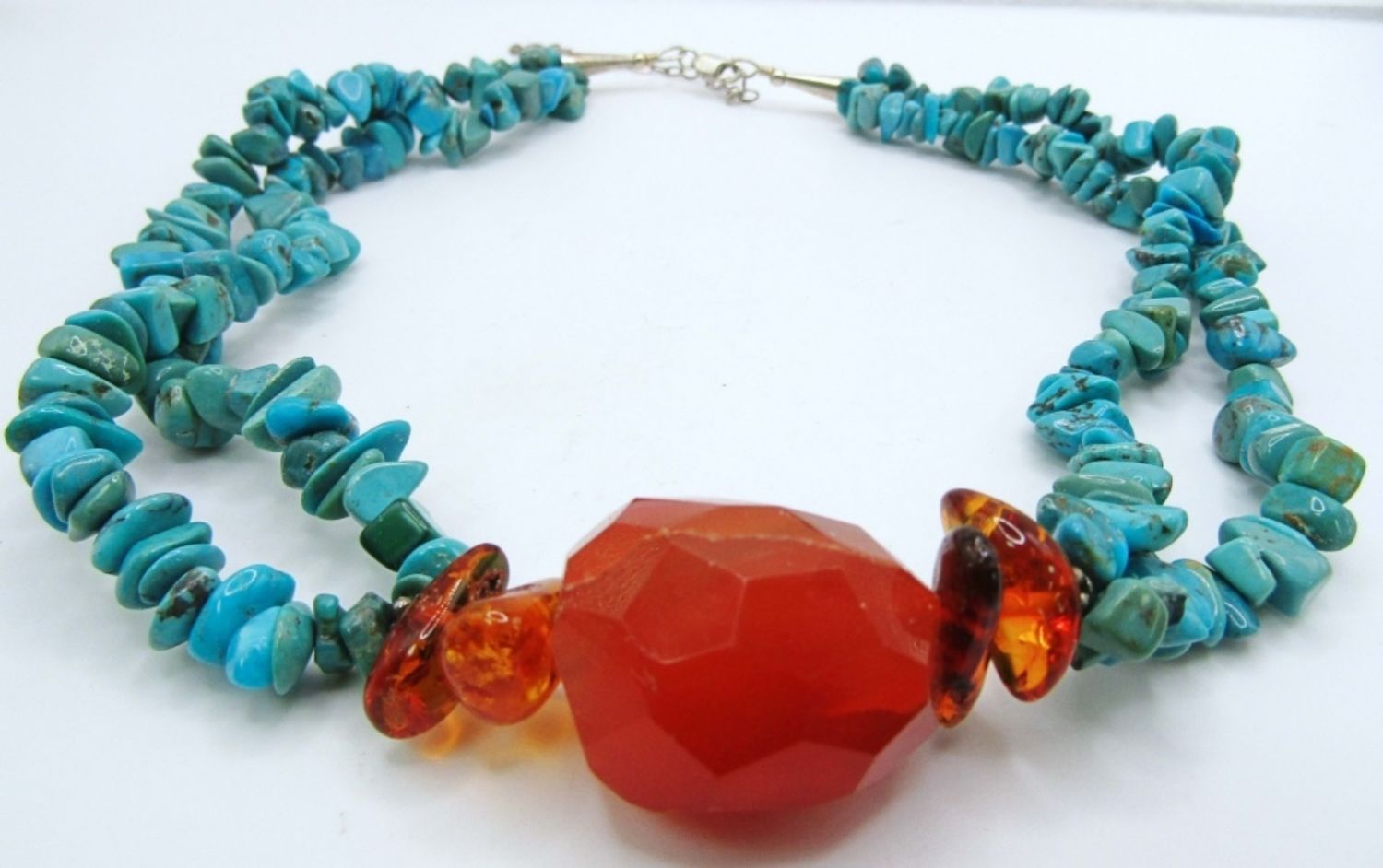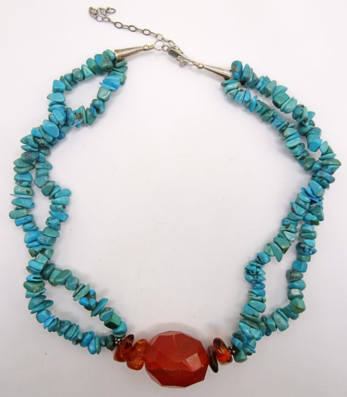 BEADED NECKLACE WITH BALTIC AMBER STONE ACCENTS-MEASURES 18.5 INCHES