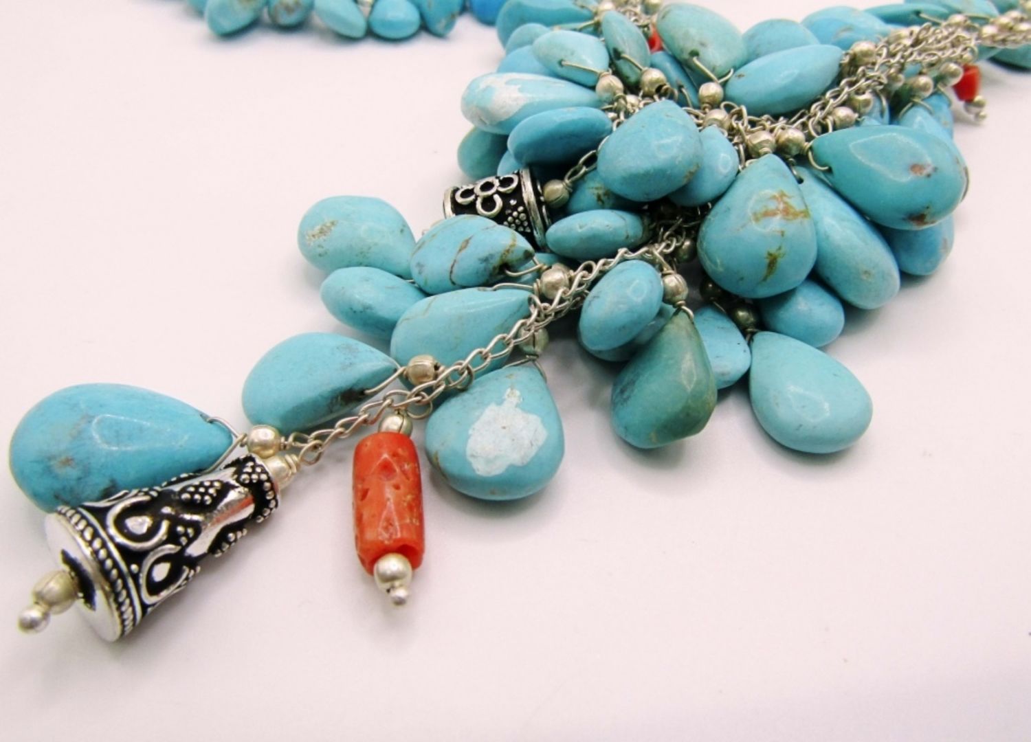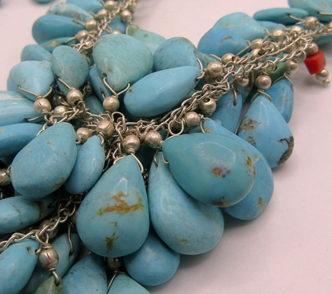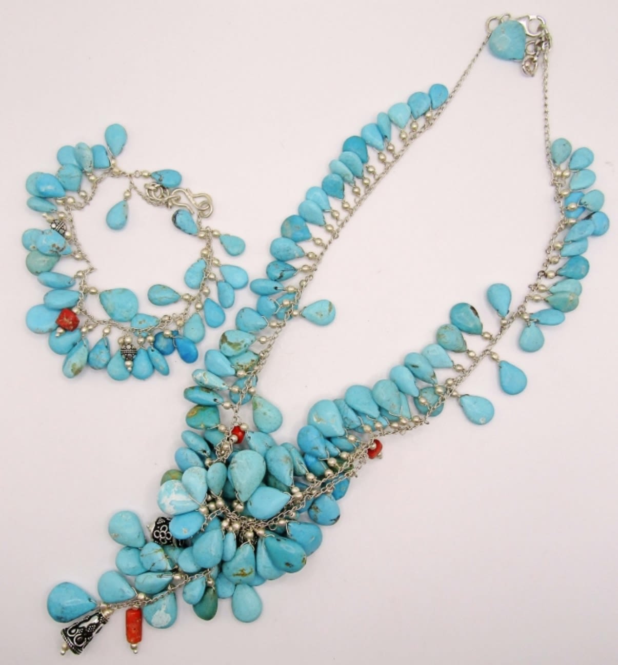 LOADED WITH TURQUOISE BEAD CHARMS & RED CORAL ACCENTS PLUS MATCHING BRACELET