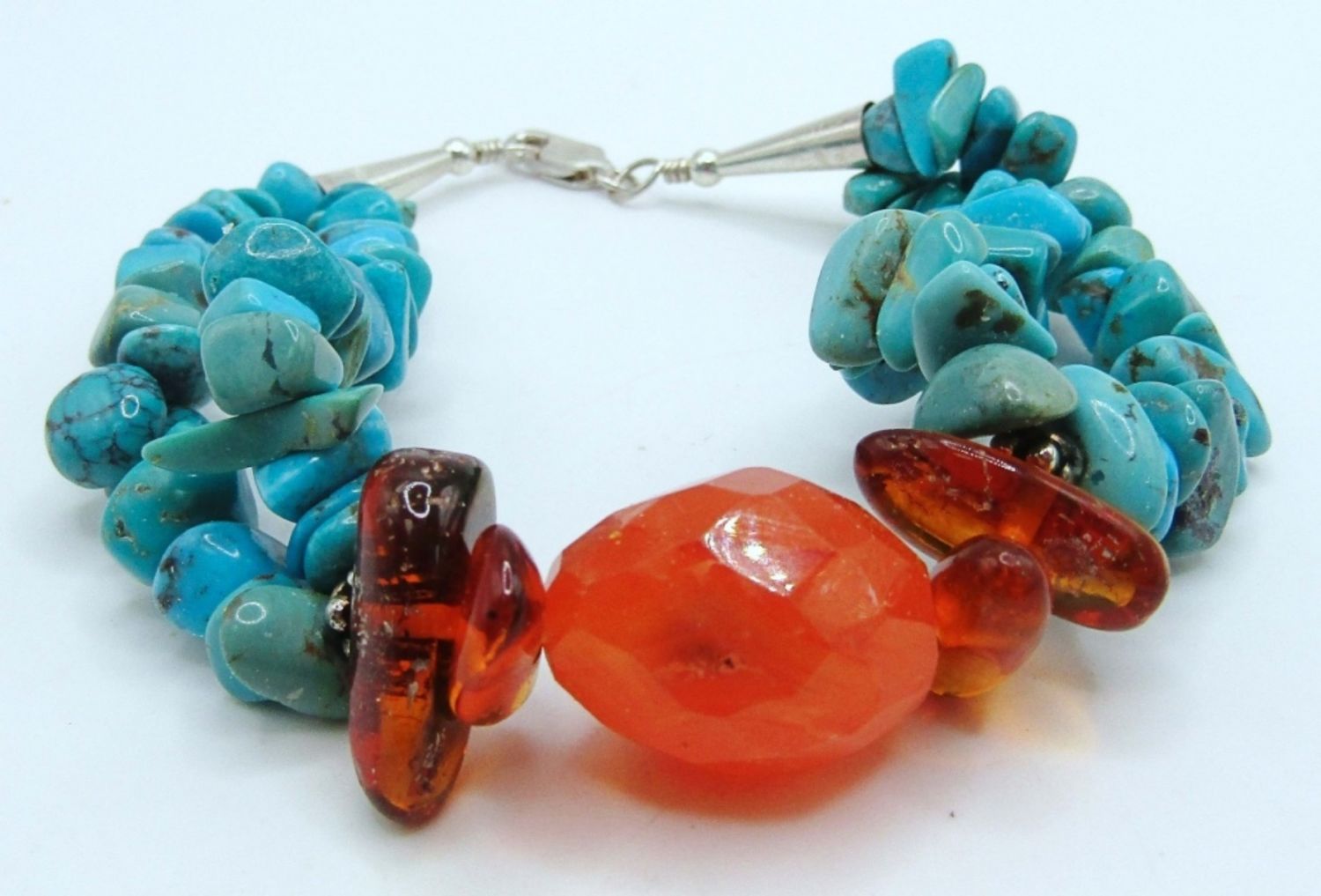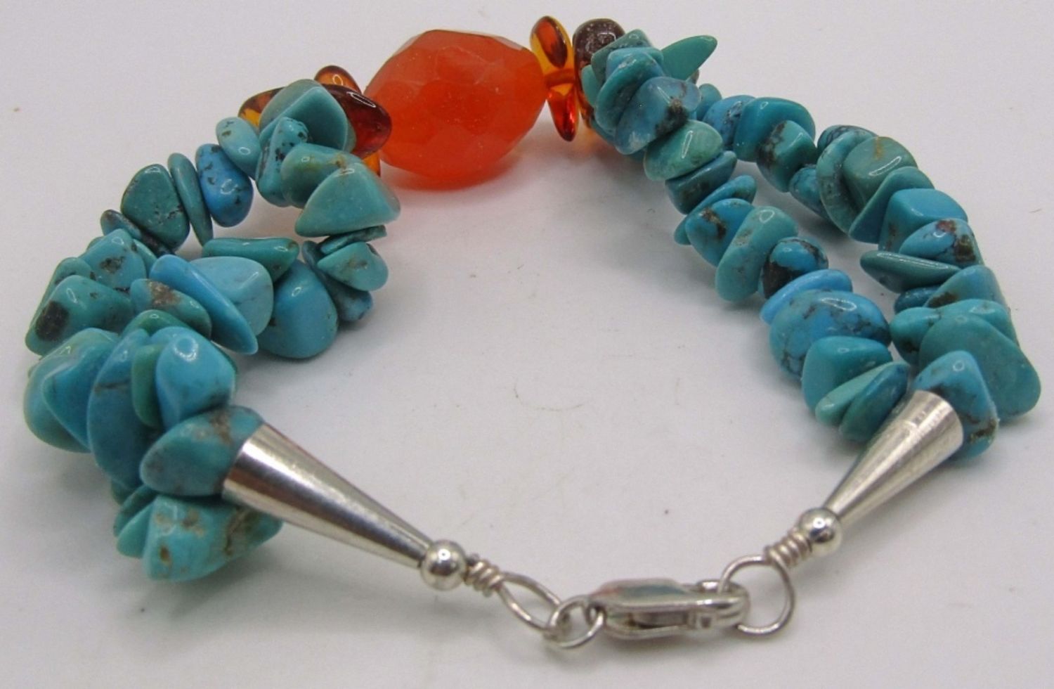 BEADED BRACELET WITH BALTIC AMBER STONE ACCENTS-MEASURES 7 INCHES