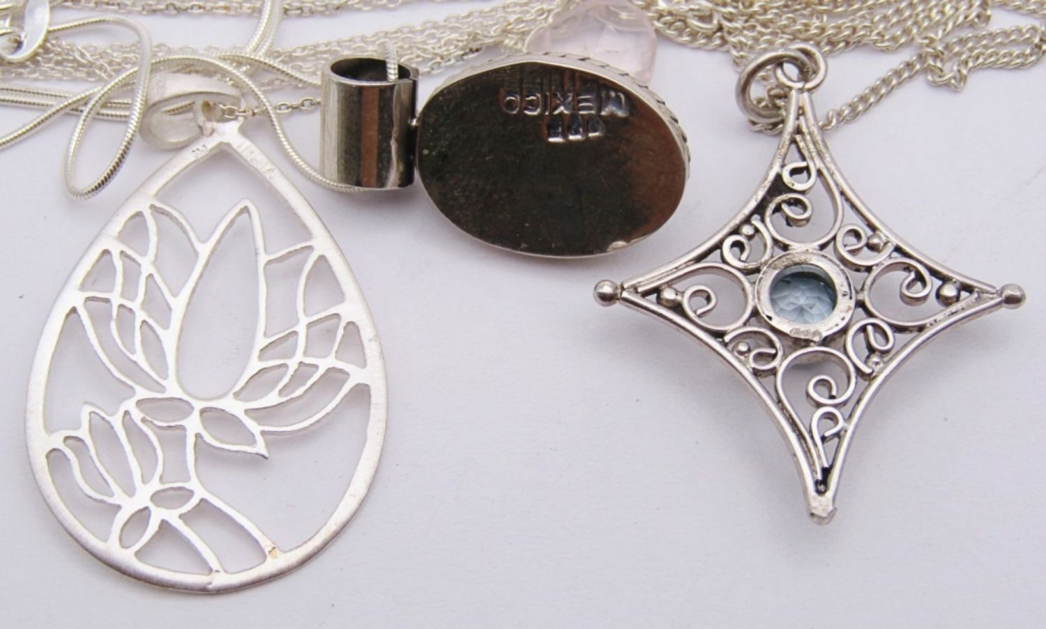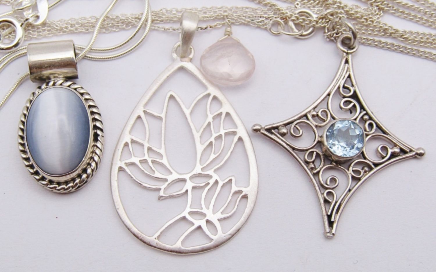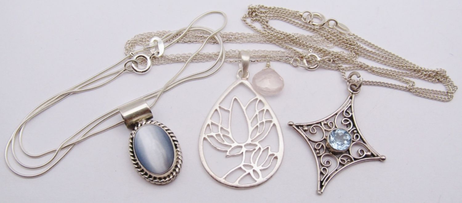 30″ TEAR DROP PENDANT, 18″ MOON STONE, 16″ LIGHT BLUE STONE