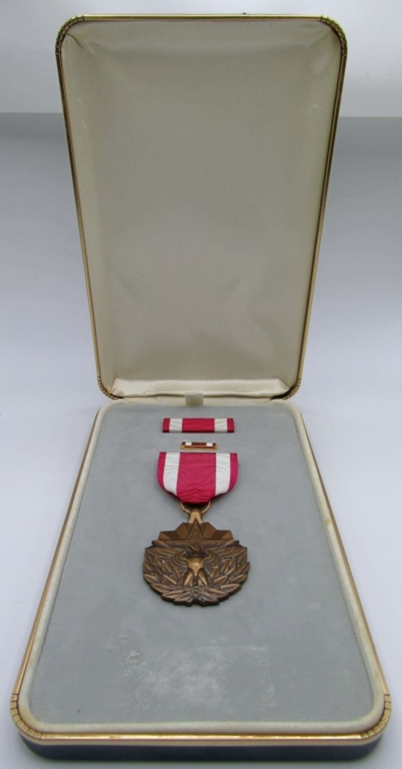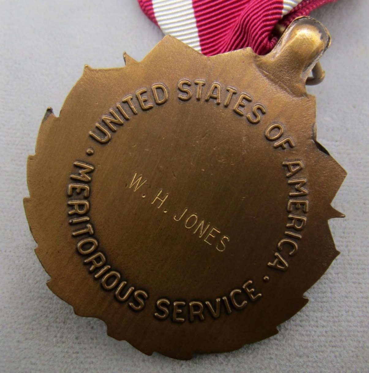 FULL SIZE MEDAL IN CASE WITH RIBBON BAR AND LAPEL PIN. INSCRIBED “W.H. JONES”
