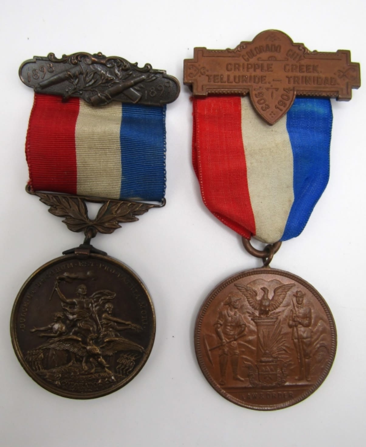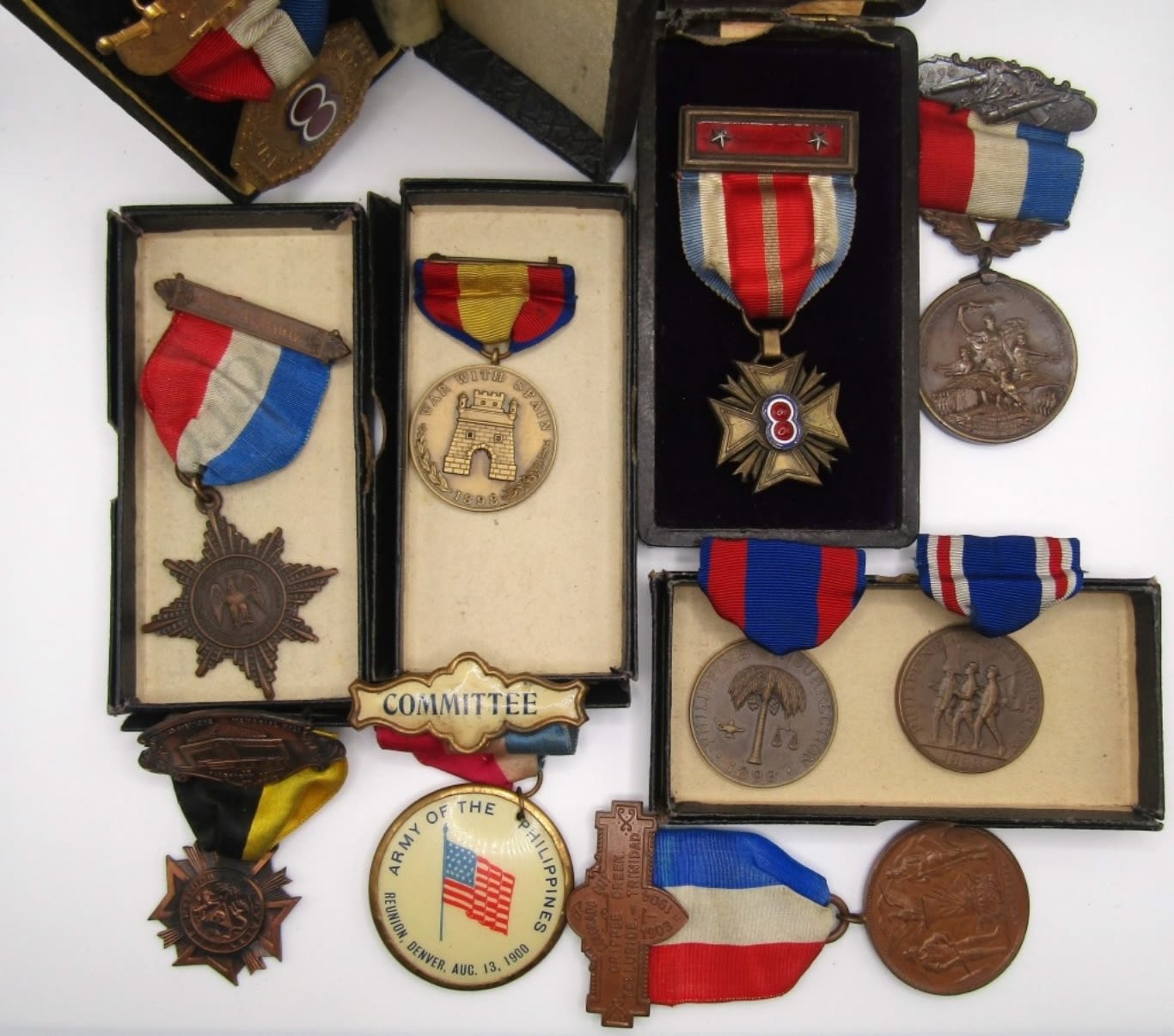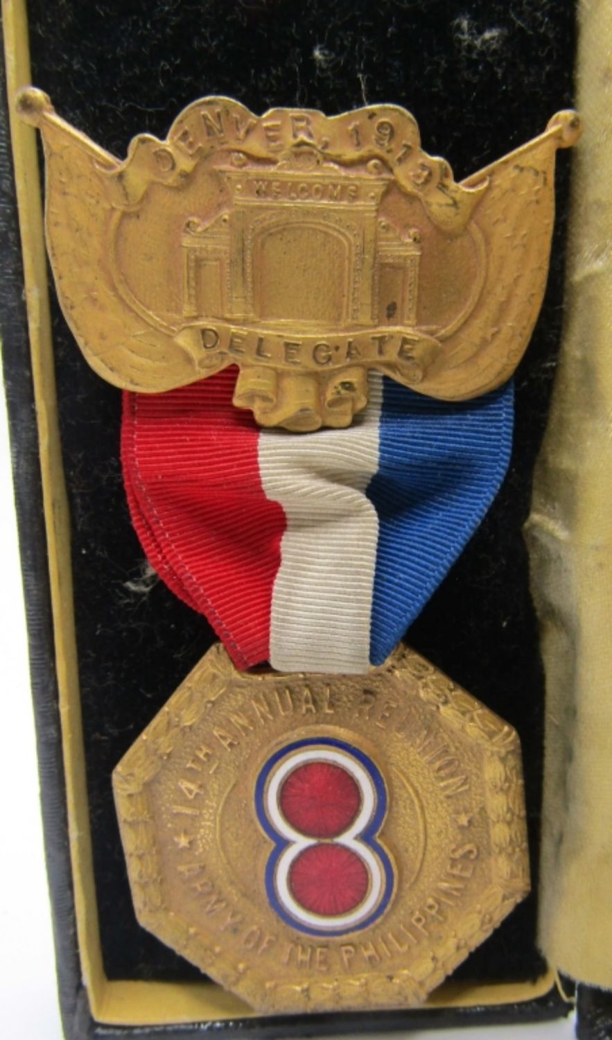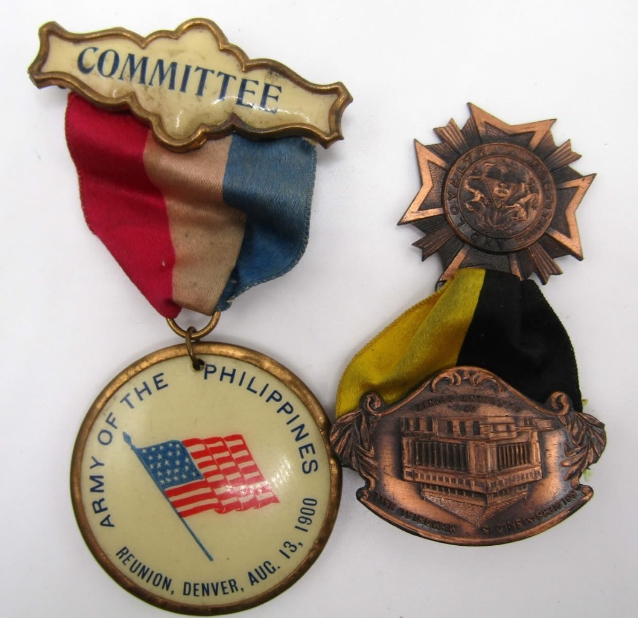 (2) DIFFERENT 1888 PHILIPPINE INSURRECTION, ARMY OF THE PHILIPPINES SOCIETY, 1900 & 1913 PHILIPPINES REUNION, (2) DIFFERENT SPANISH WAR, COLORADO NATIONAL GUARD, 1914 VETERANS REUNION PITTSBURGH, & 1904 COLORADO CITY.