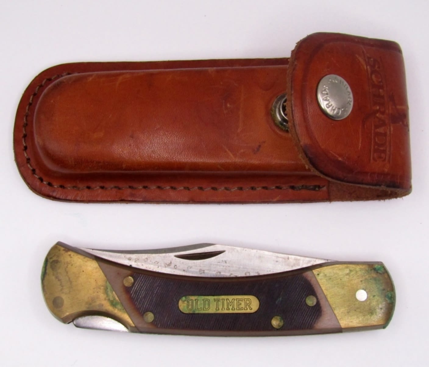 Large Old Timer Pocket Knife (Used), Schrade Belt Sheath (Used)