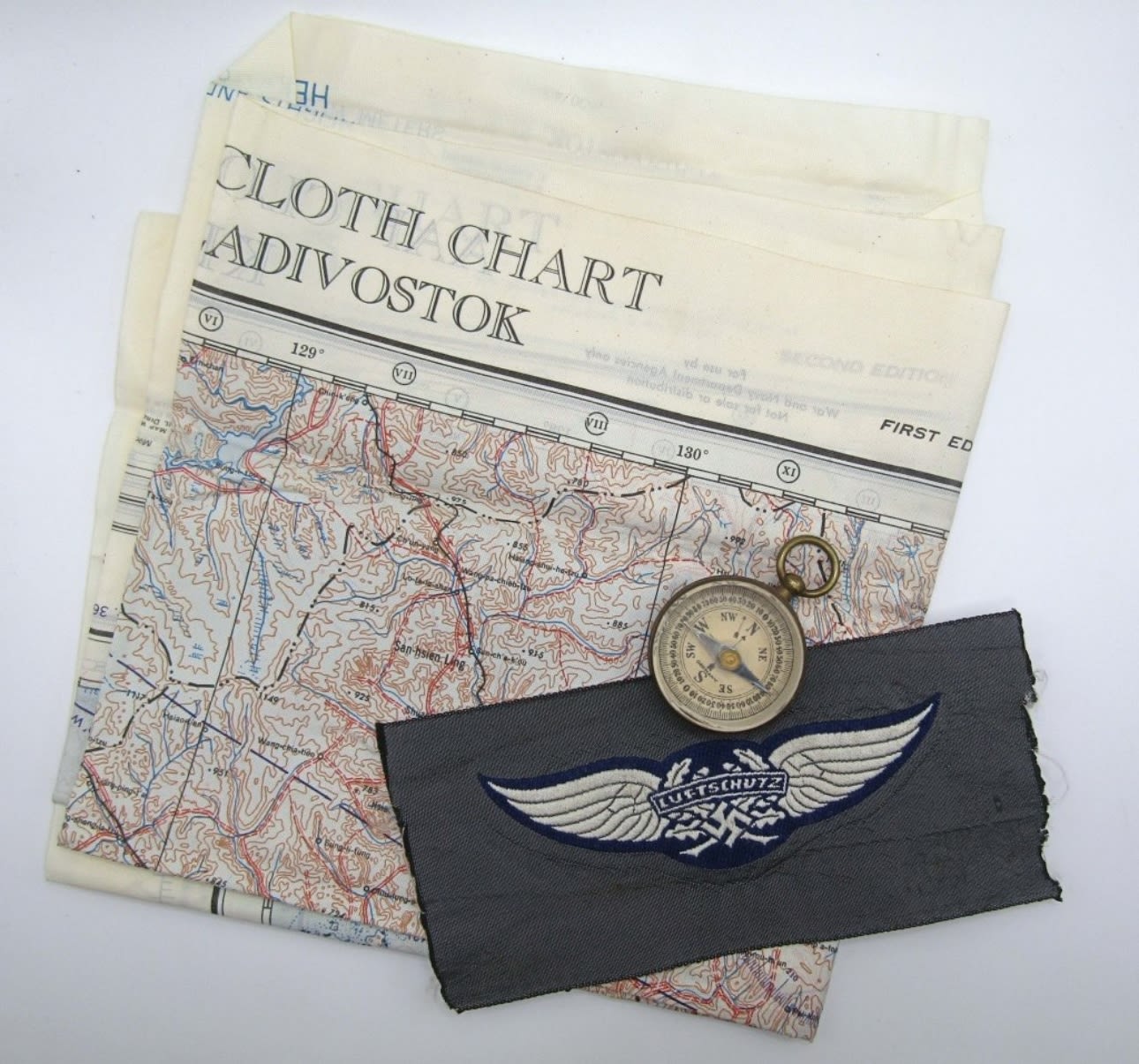 GERMANY WORKING COMPASS & GERMAN SILK LUFTSCHUTZ PATCH