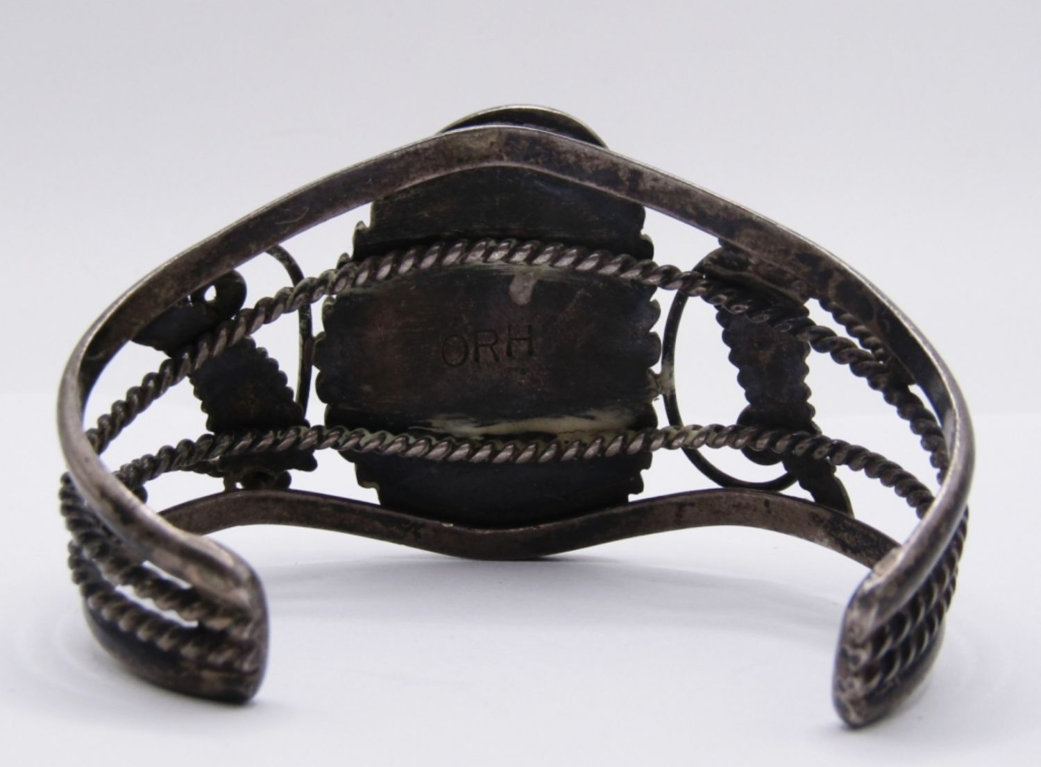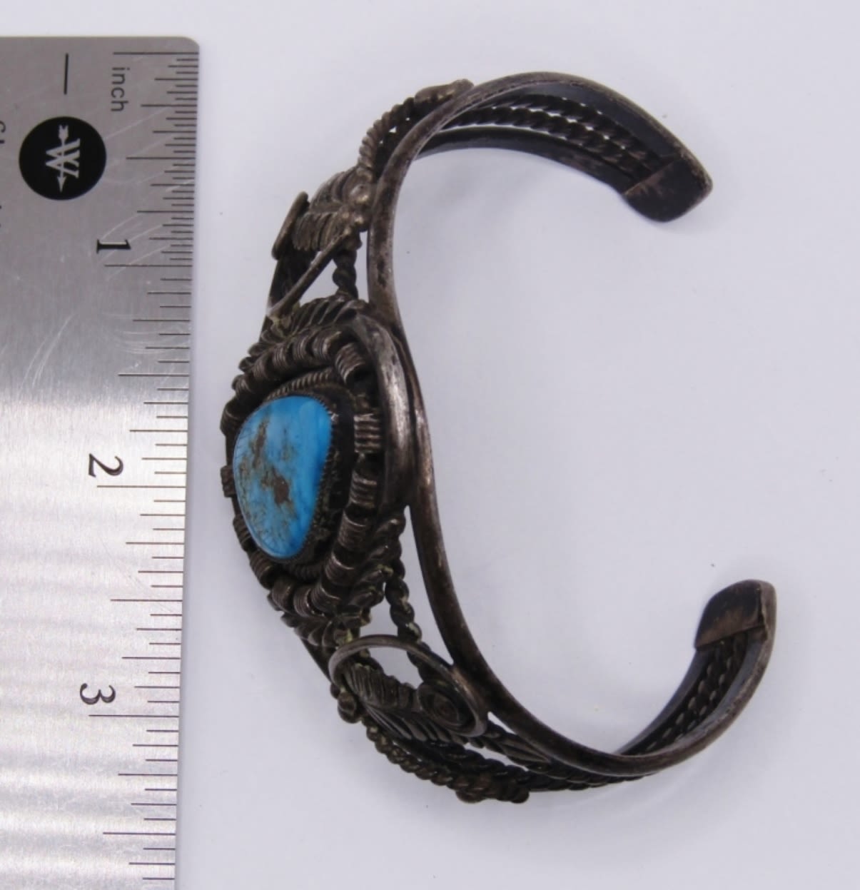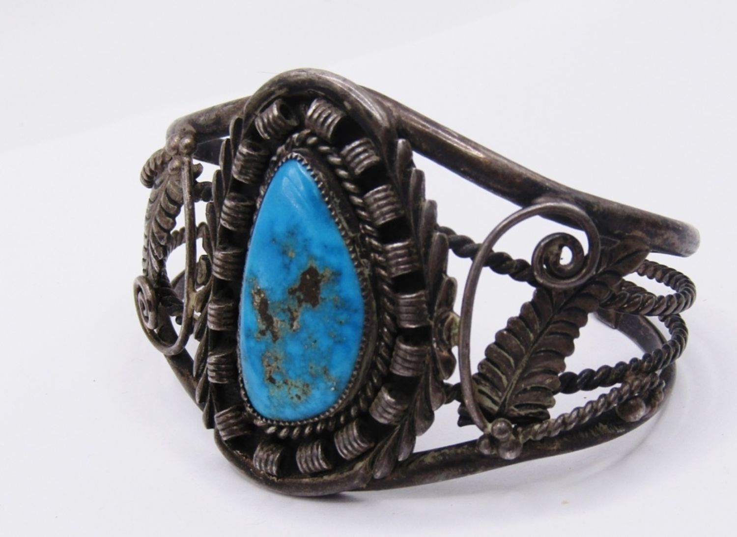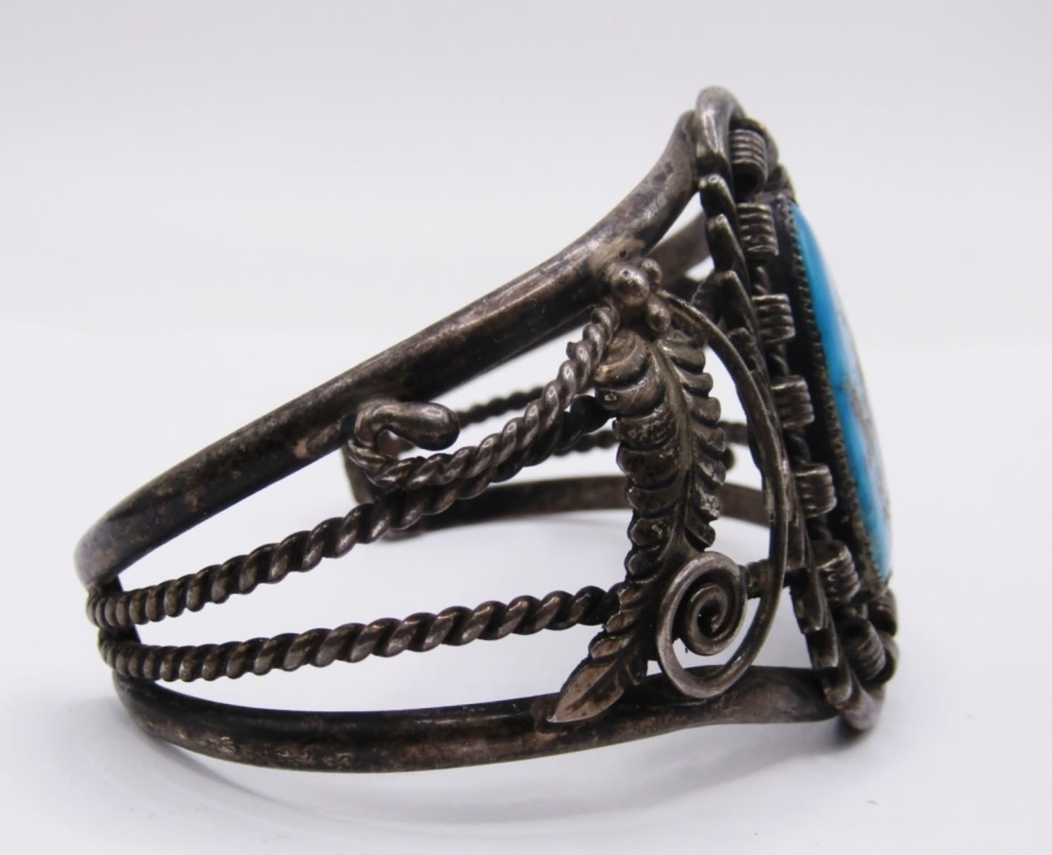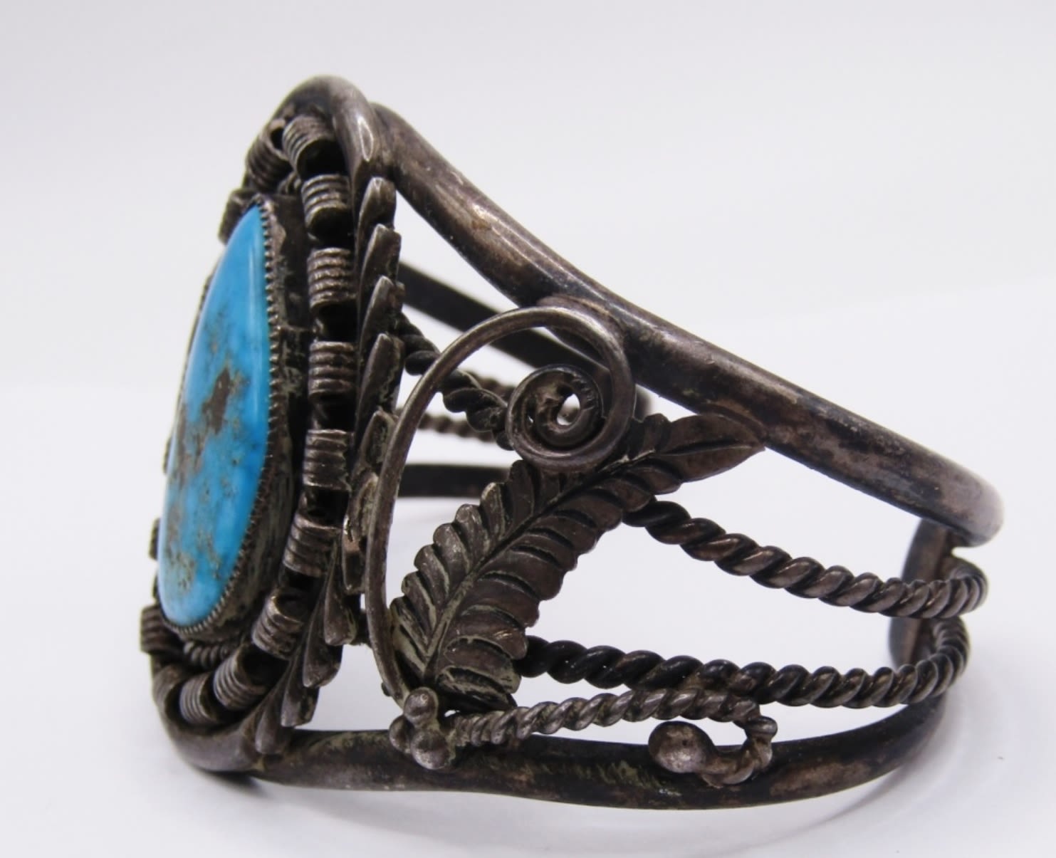 LARGE CUFF BRACELET WITH LARGE TURQUOISE STONE AND BEAUTIFUL VINTAGE SOUTHWEST DESIGN