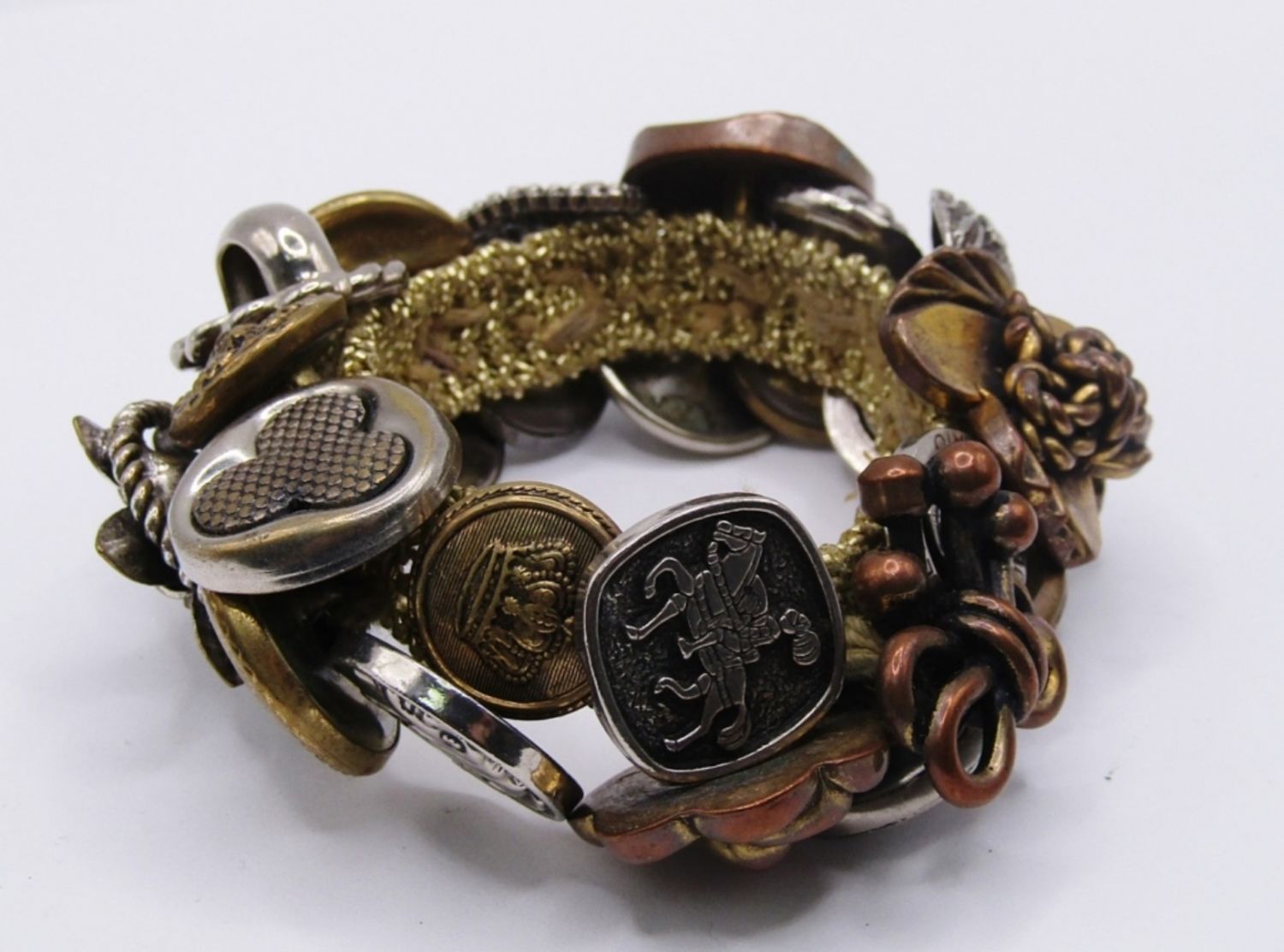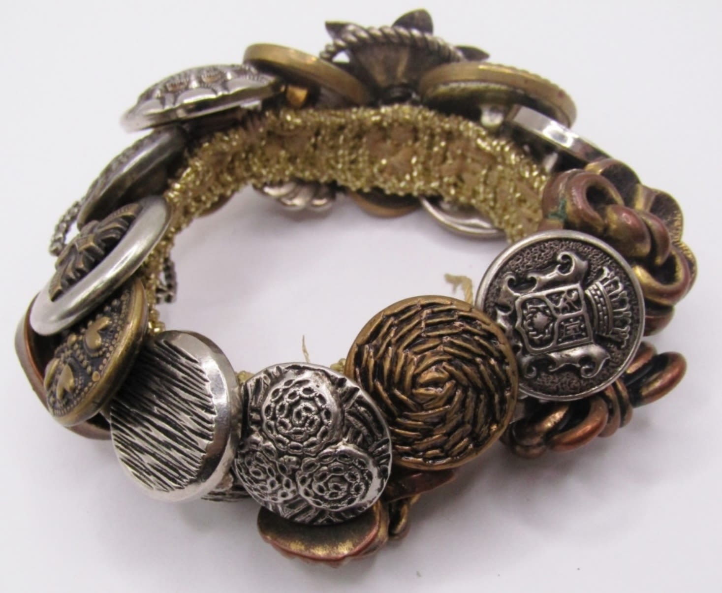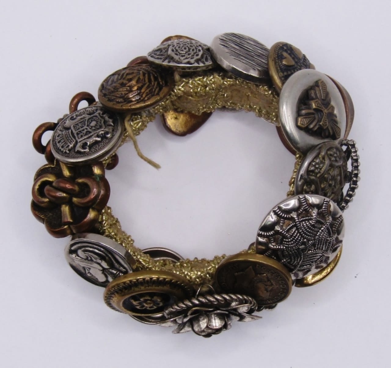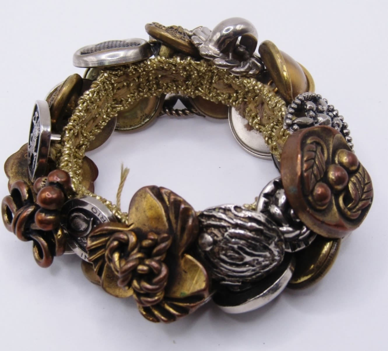 VINTAGE GOLD, SILVER, AND COPPER TONE BUTTONS SEWN ON ELASTIC BAND, VERY UNIQUE ACCESSORY