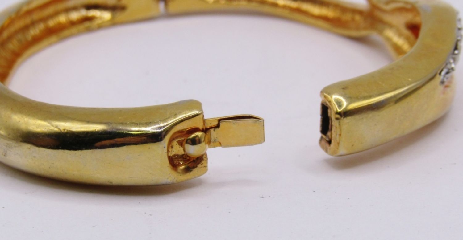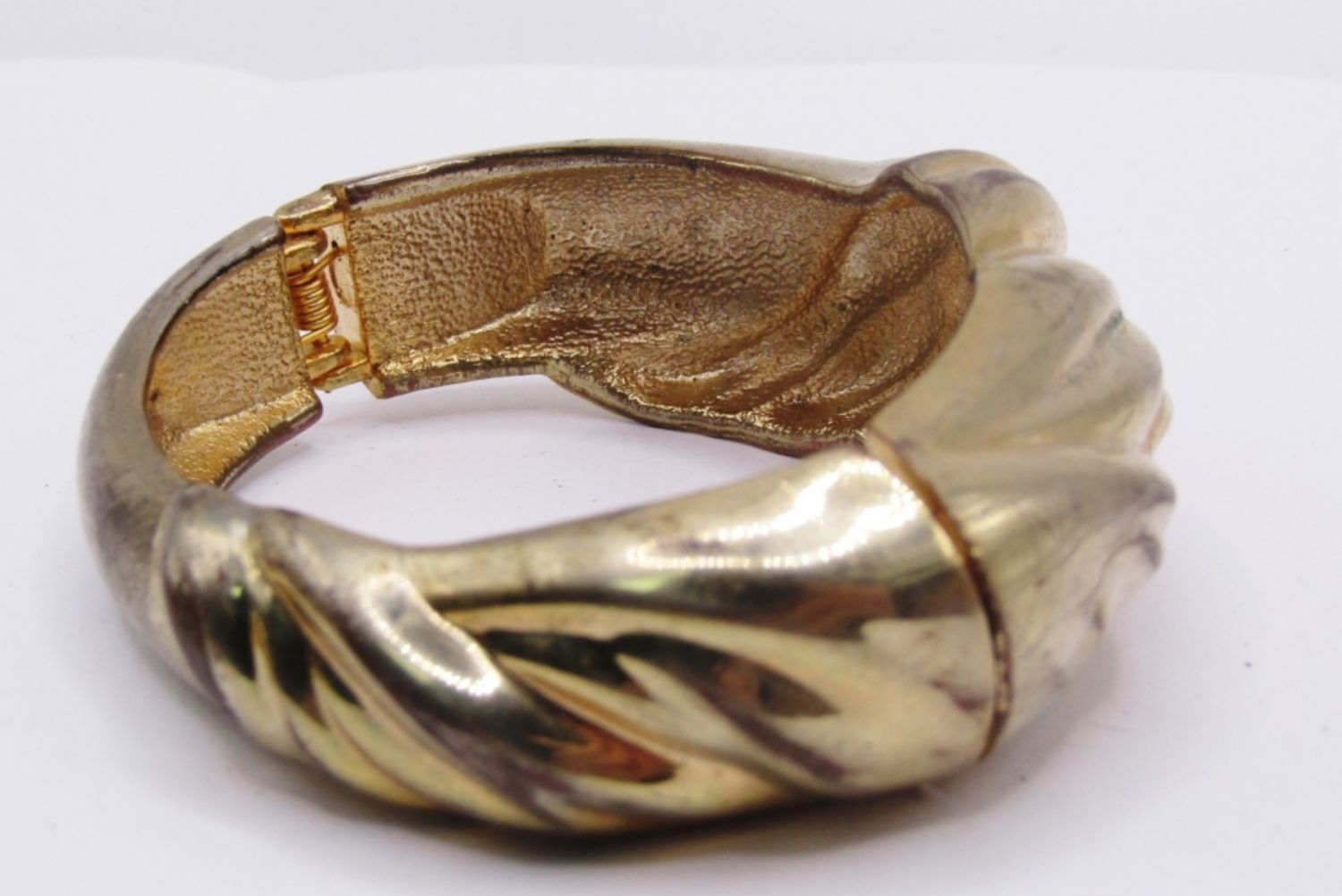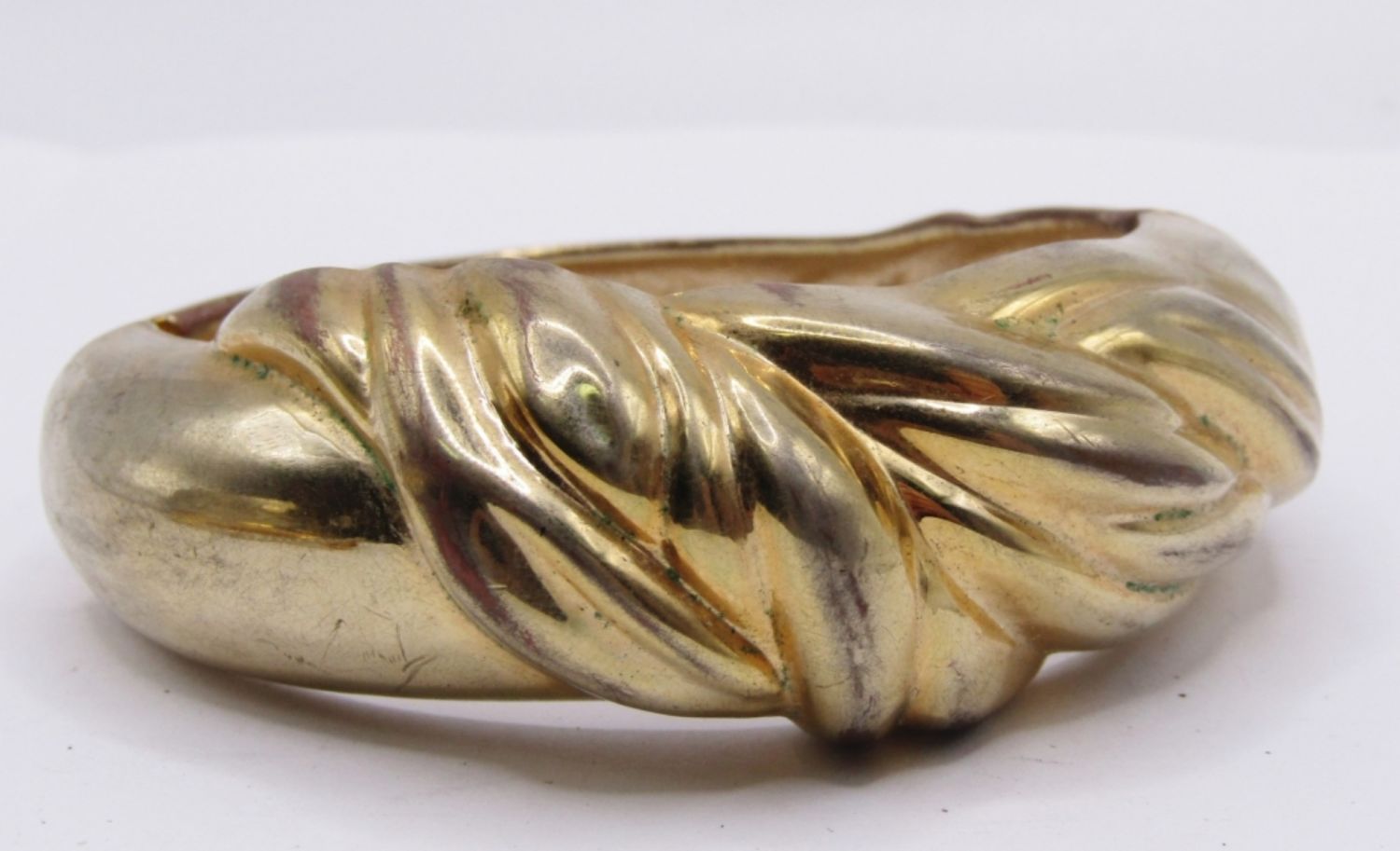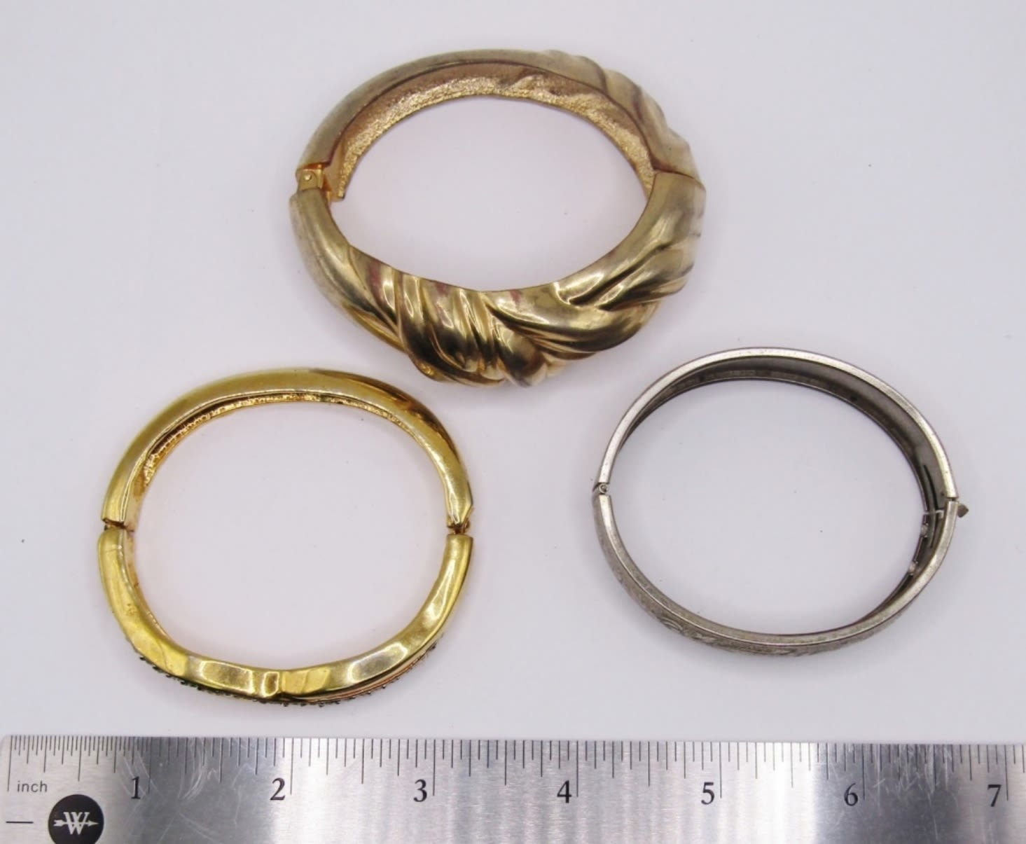 LOT OF 3 VINTAGE GOLD TONE HINGE BRACELETS, UNIQUE BEAUTIFUL DESIGNS