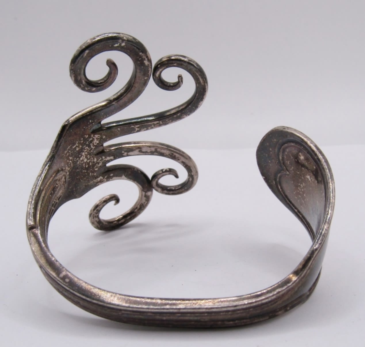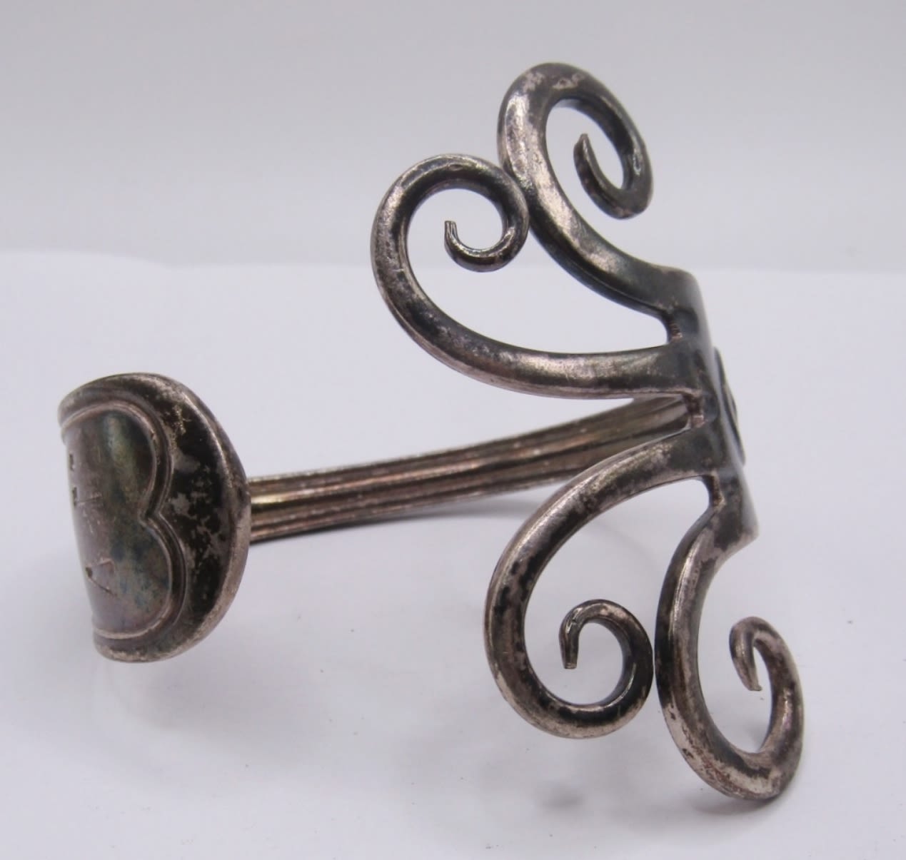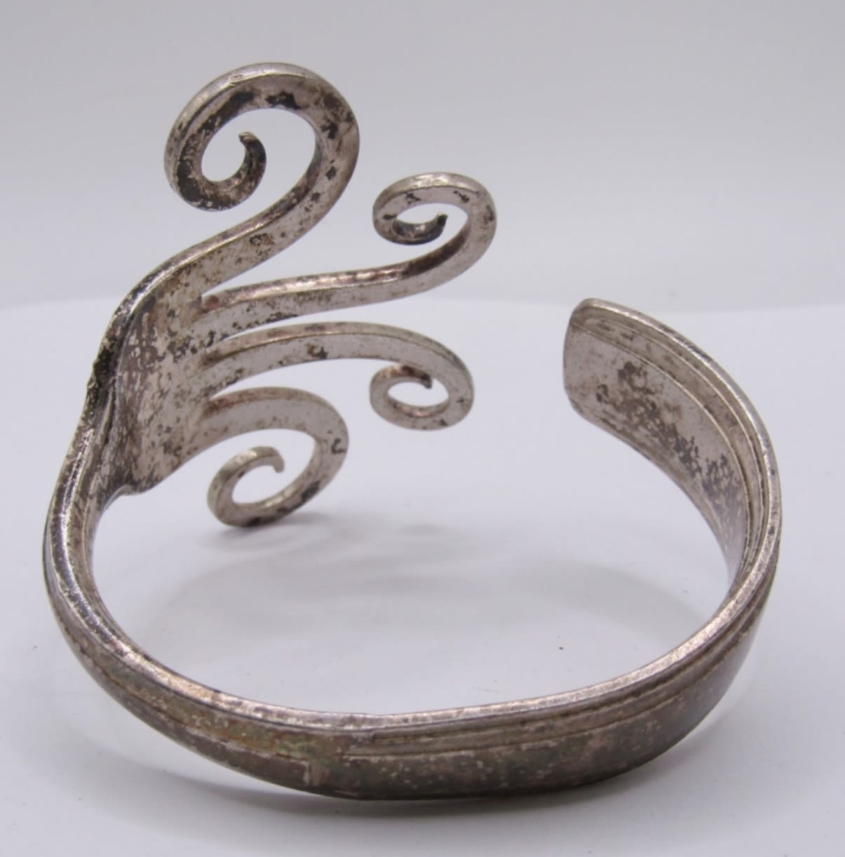 LOT OF 2 MATCHING ANTIQUE SILVER FORK BRACELETS, CUFF STYLE, HEAVY WITH A UNIQUE EYE CATCHING DESIGN