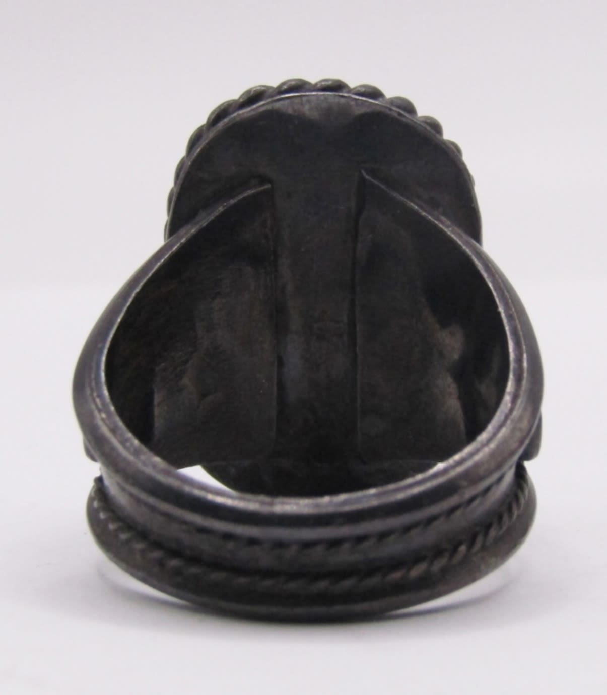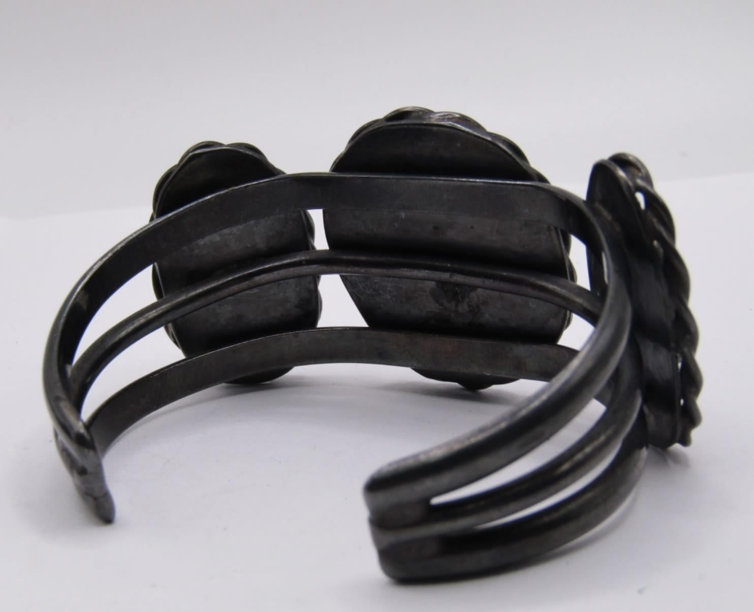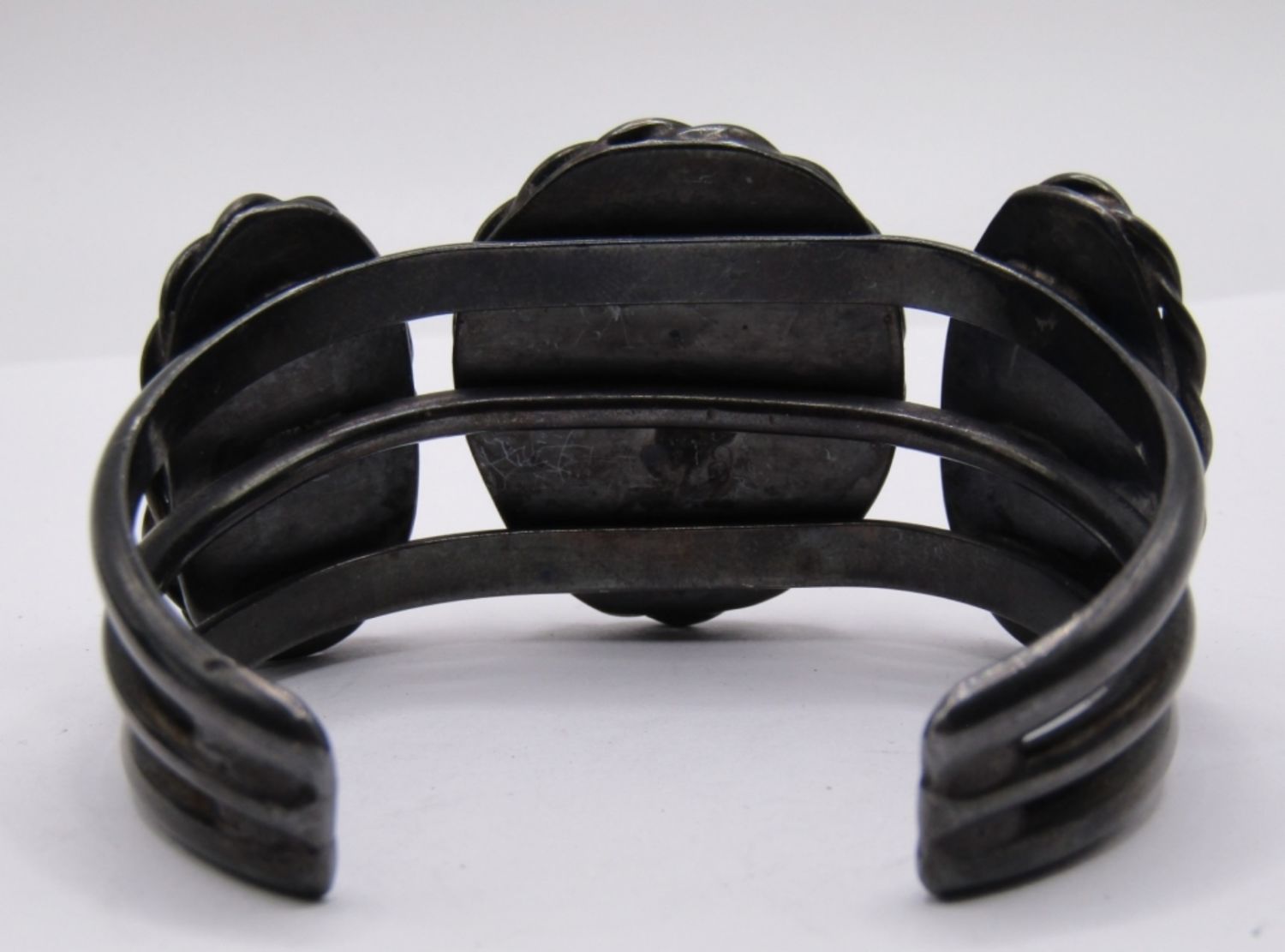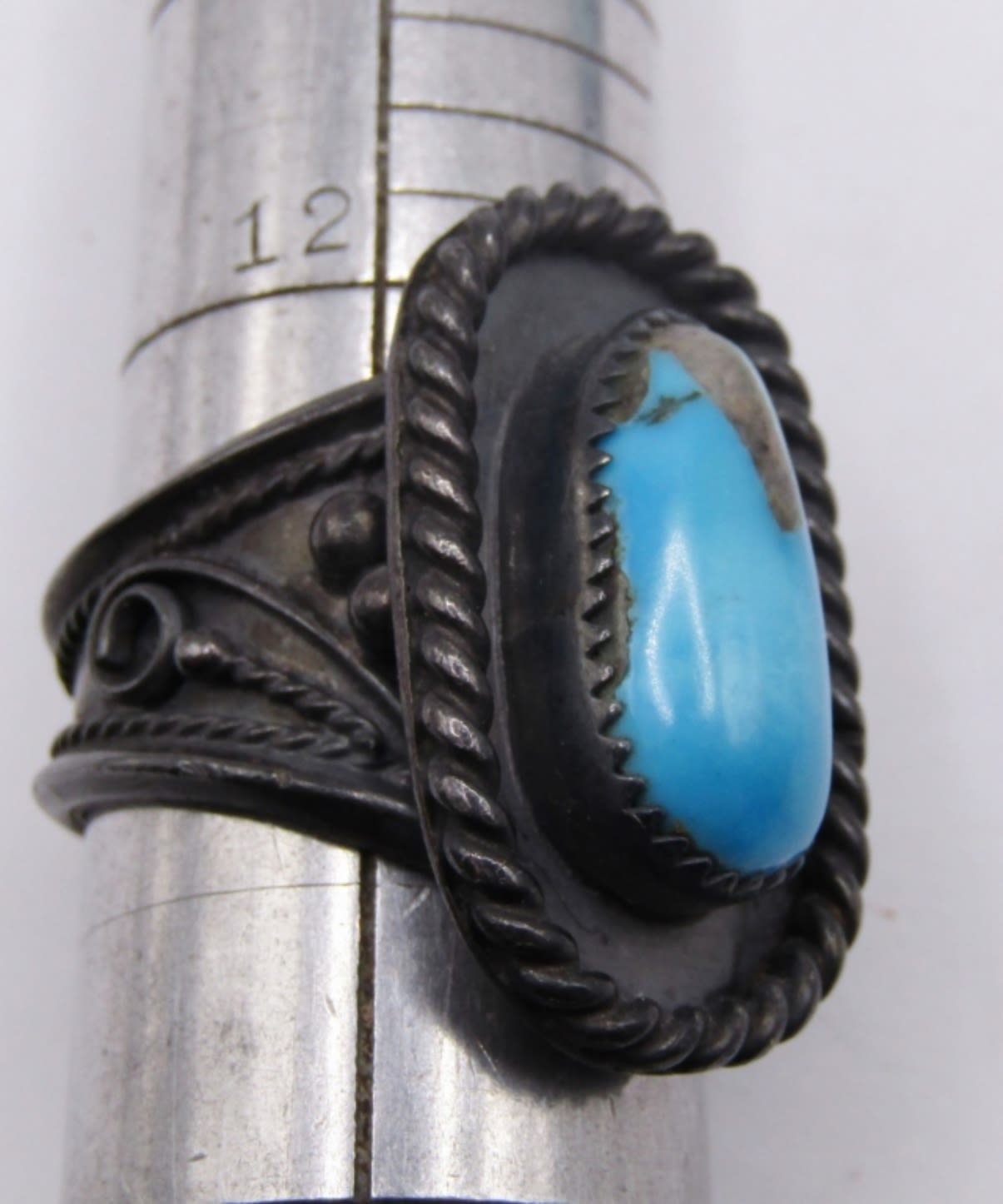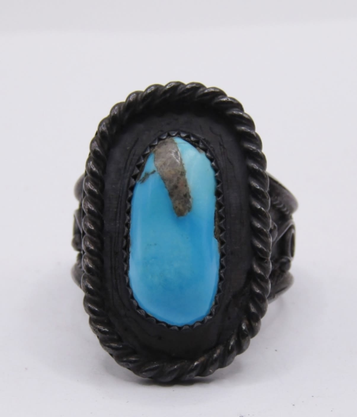 MATCHING CUFF BRACELET AND RING SET, BEAUTIFUL LARGE TURQUOISE STONES, WIDE SET WITH BLACK TONE METAL