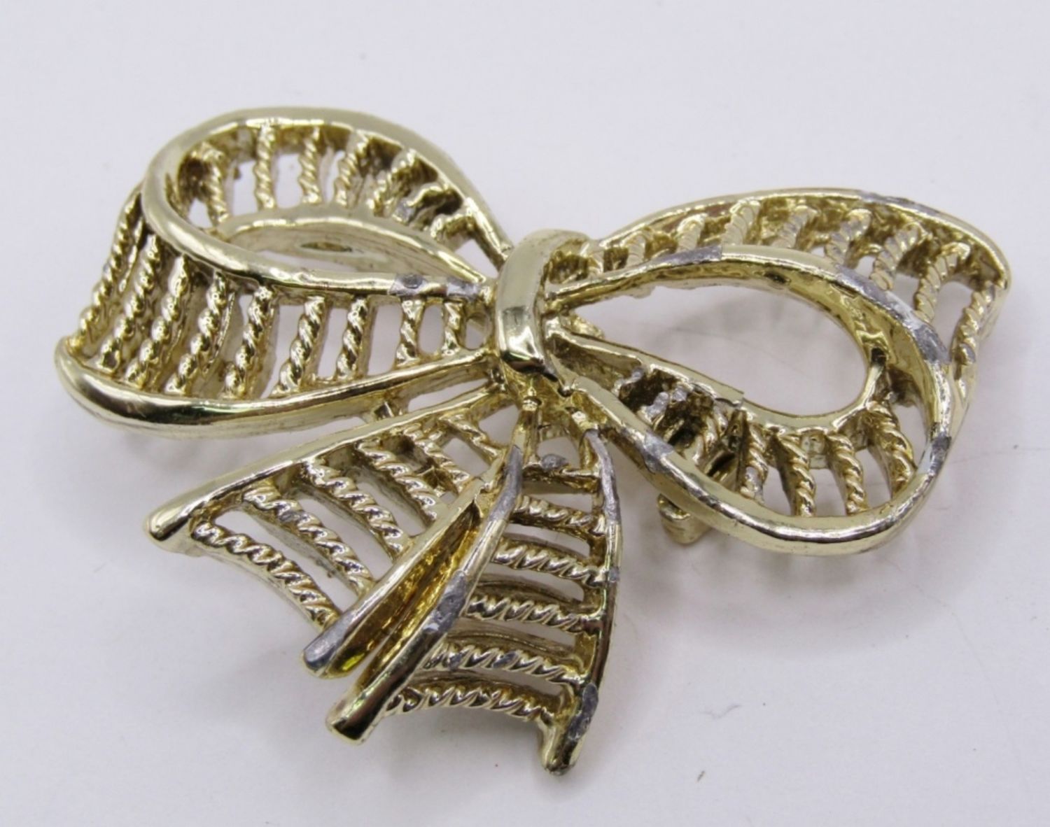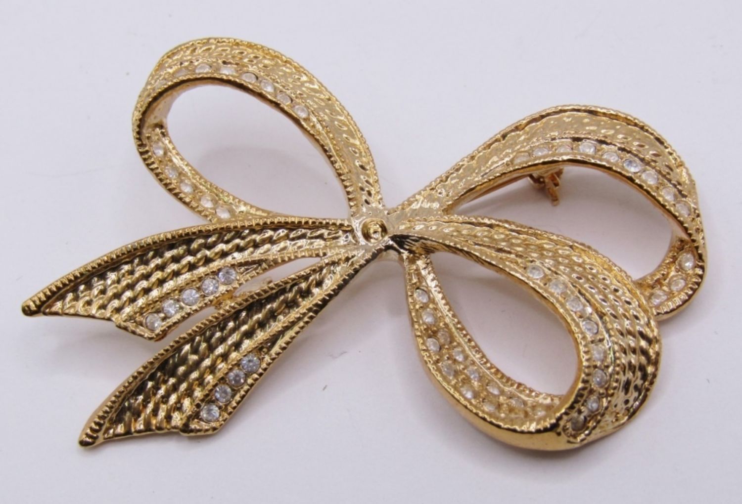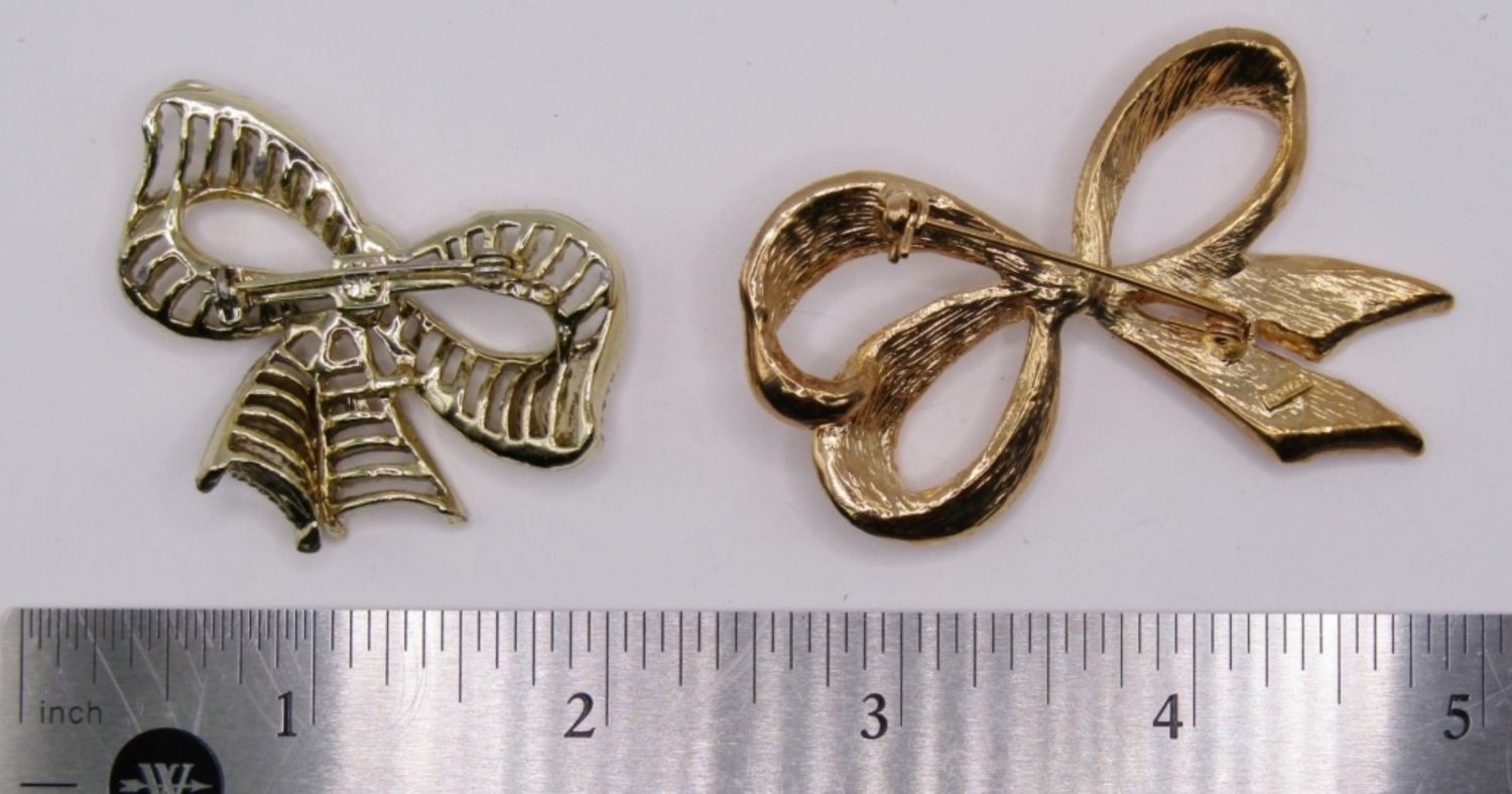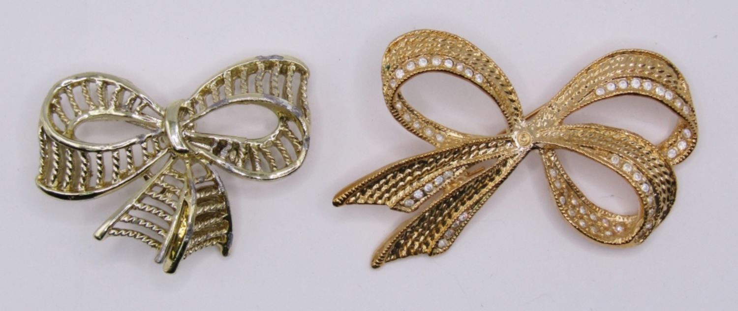 LOT OF 2 GOLD TONE SHINY SPARKLY BROOCHES WITH BOW DESIGNS