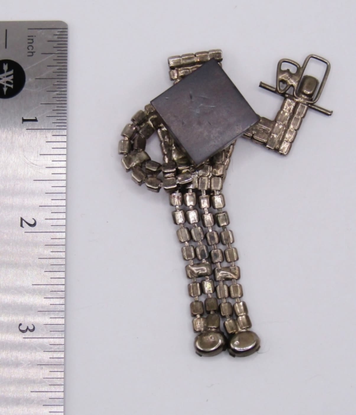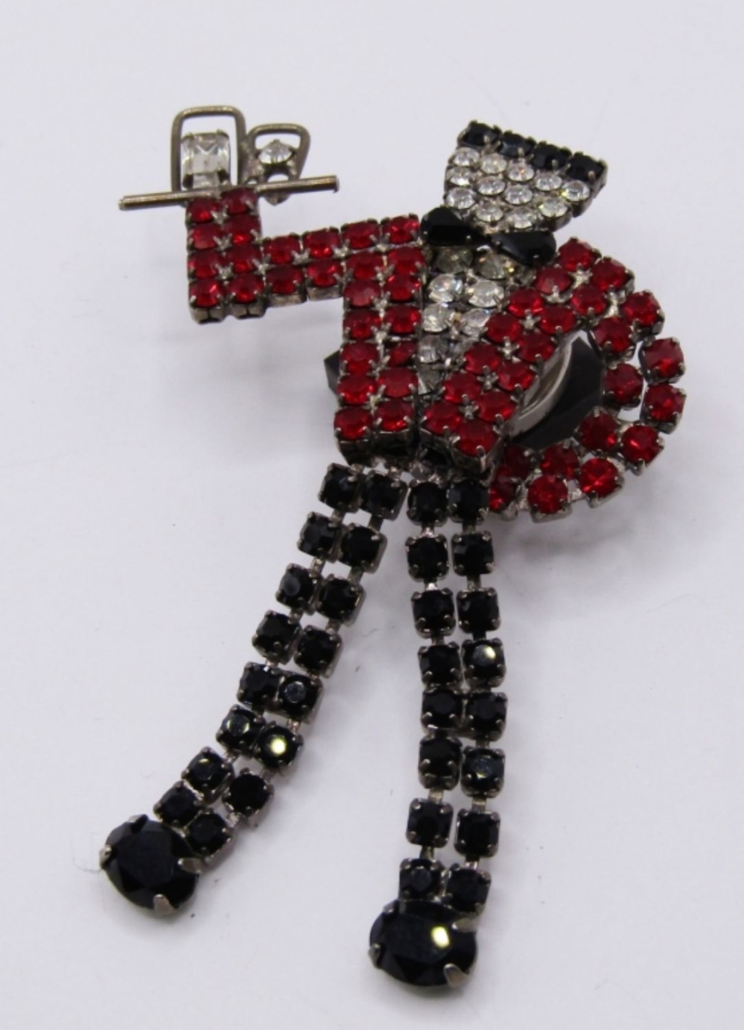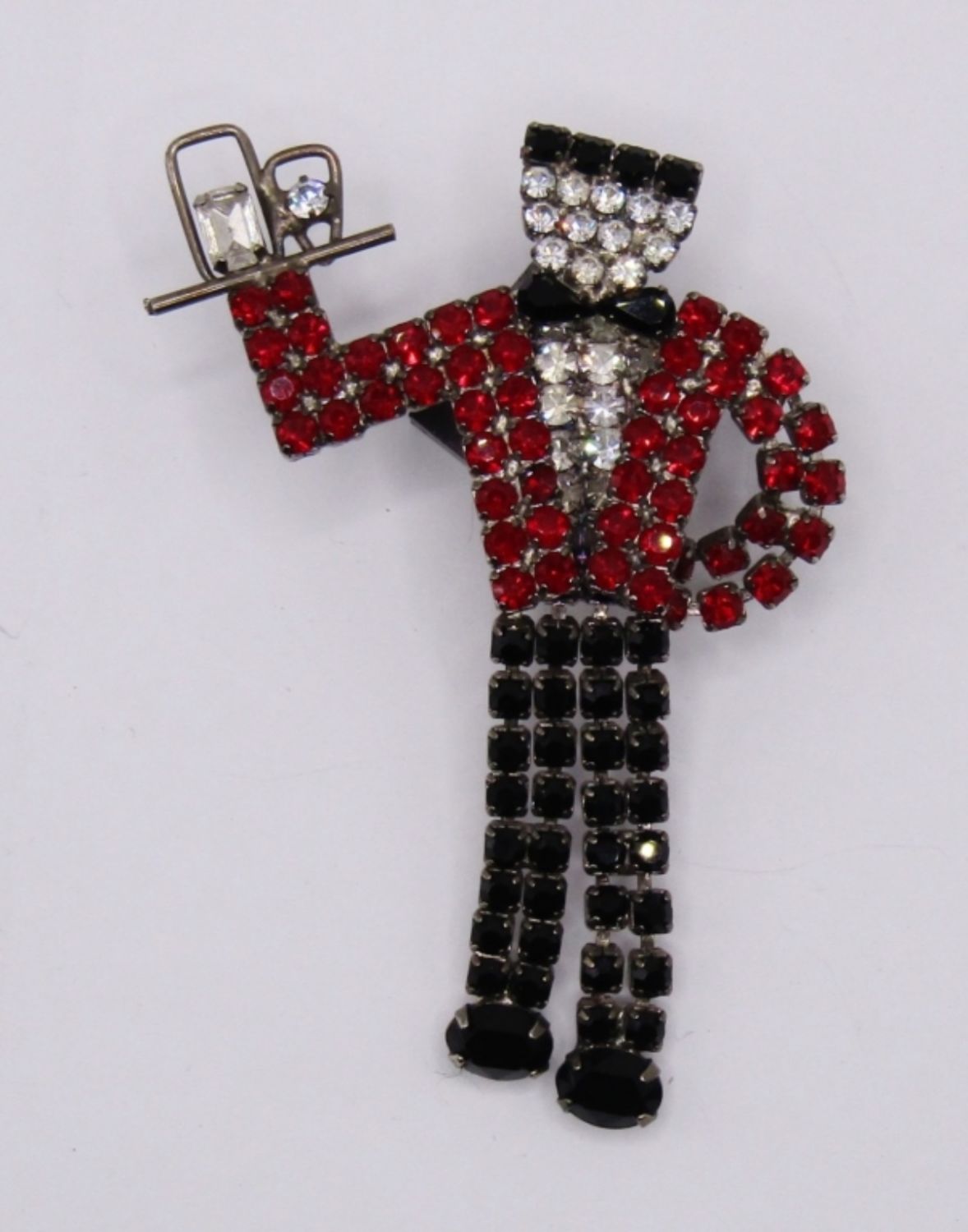 SPARKLY RHINESTONE MAGNETIC BROOCH COCKTAIL WAITER DESIGN WITH BLACK RED AND CLEAR RHINESTONES
