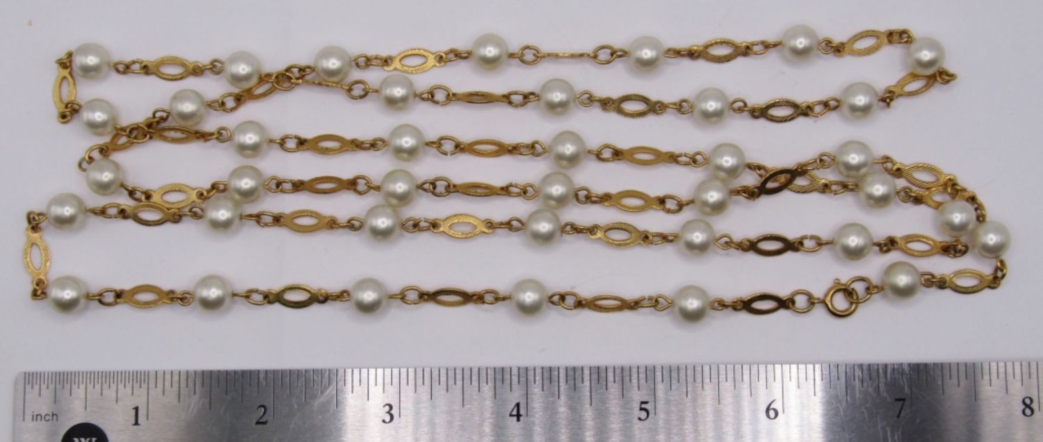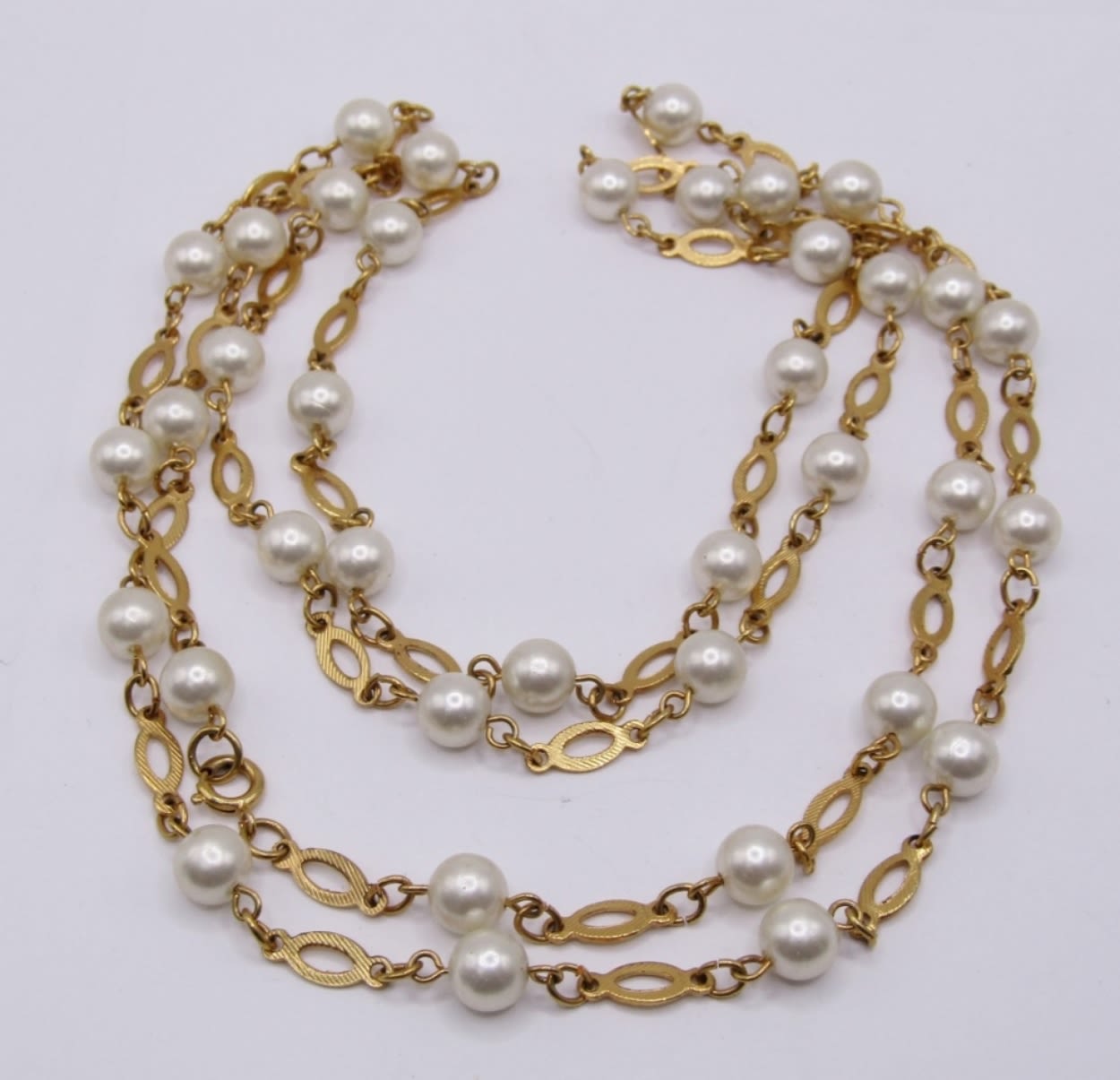 FAUX PEARL GOLD TONE LONG COSTUME NECKLACE