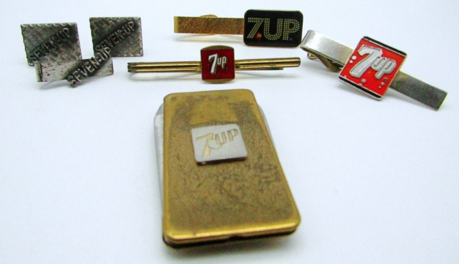 4 TIE CLIPS, MONEY CLIP, IS ALSO A POCKET KNIFE, CUFFLINKS