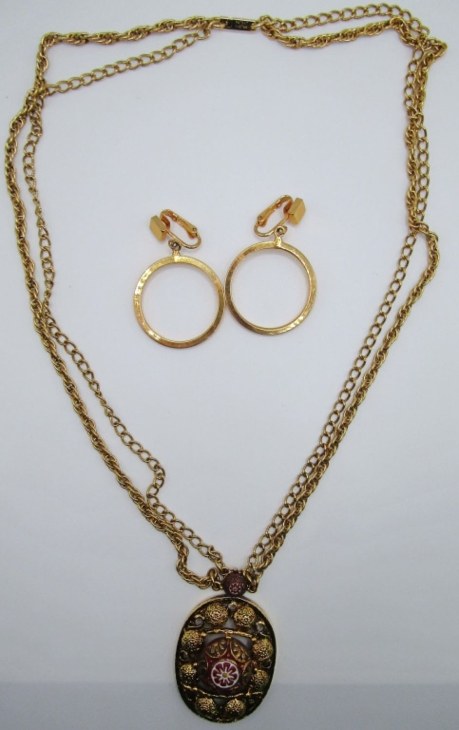 22IN IN LENGTH FOR CHAIN,STAMPED BEHIND PENDANT,CLIP-ON DANGLE EARRINGS W/STAMPED MARKING
