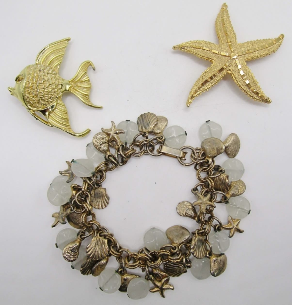 7IN IN LENGTH W. STARFISH SEASHELLS, BROOCHES ARE 2IN