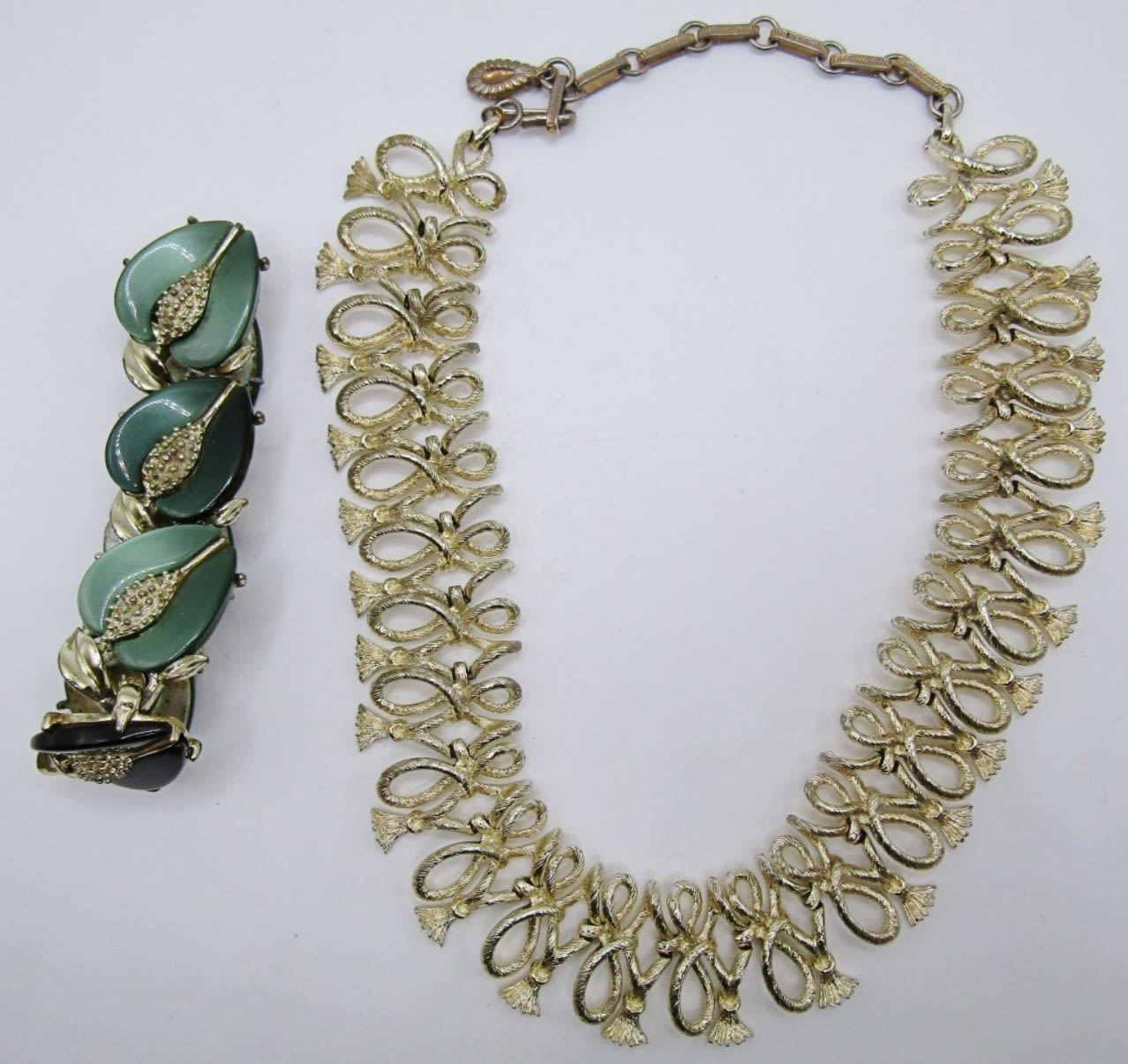16IN IN LENGTH, ADJUSTABLE WITH HOOK CLASP GOLD TONE, STAMPED OF MAKER,7IN FOR LEAF BRACELET