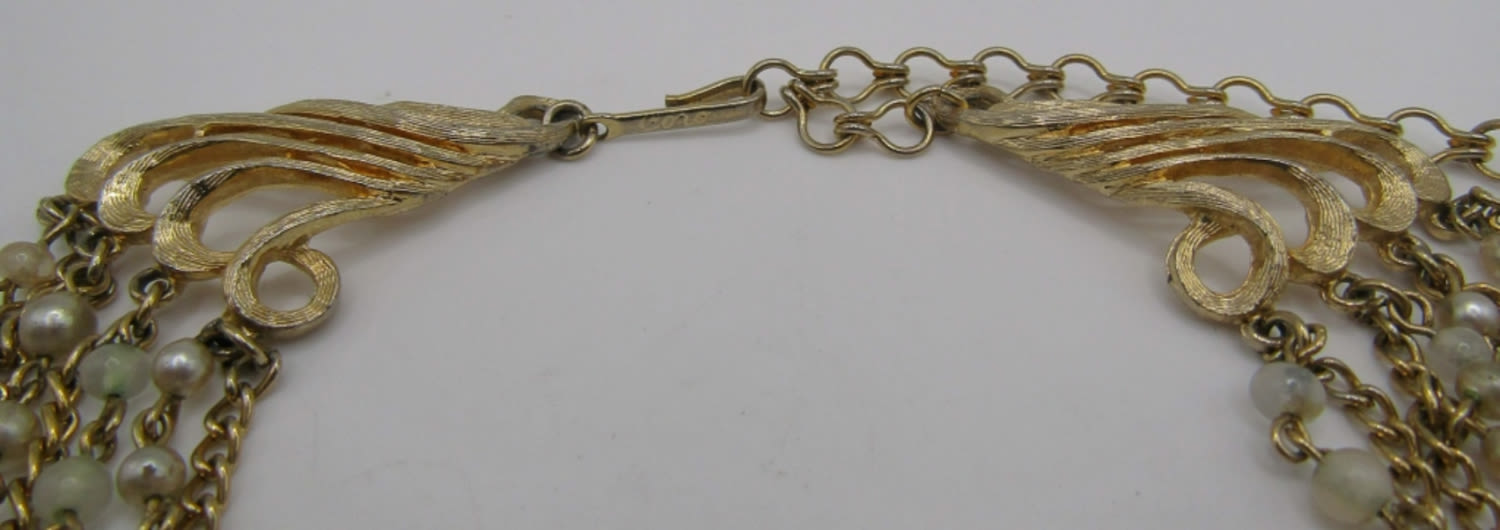 16IN LENGTH, ADJUSTABLE, STAMPED BY MAKER, NECKLACE LAYERED W/WHITE AND CLEAR BEADING