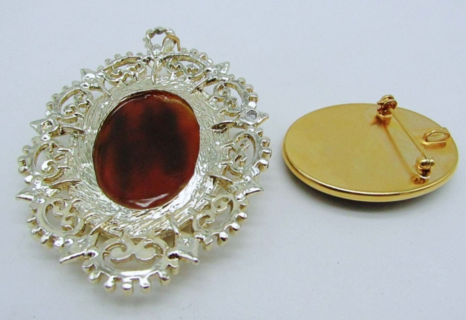 THE BLUE BACKGROUND IS 2IN IN LENGTH, ALSO A PIN, AND PENDANT IS OVER 3IN