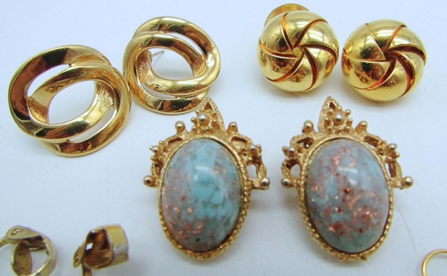2- PIERCED STUDS, 2 CLIP-ONS,1-DROPS, 1- HUGGIES