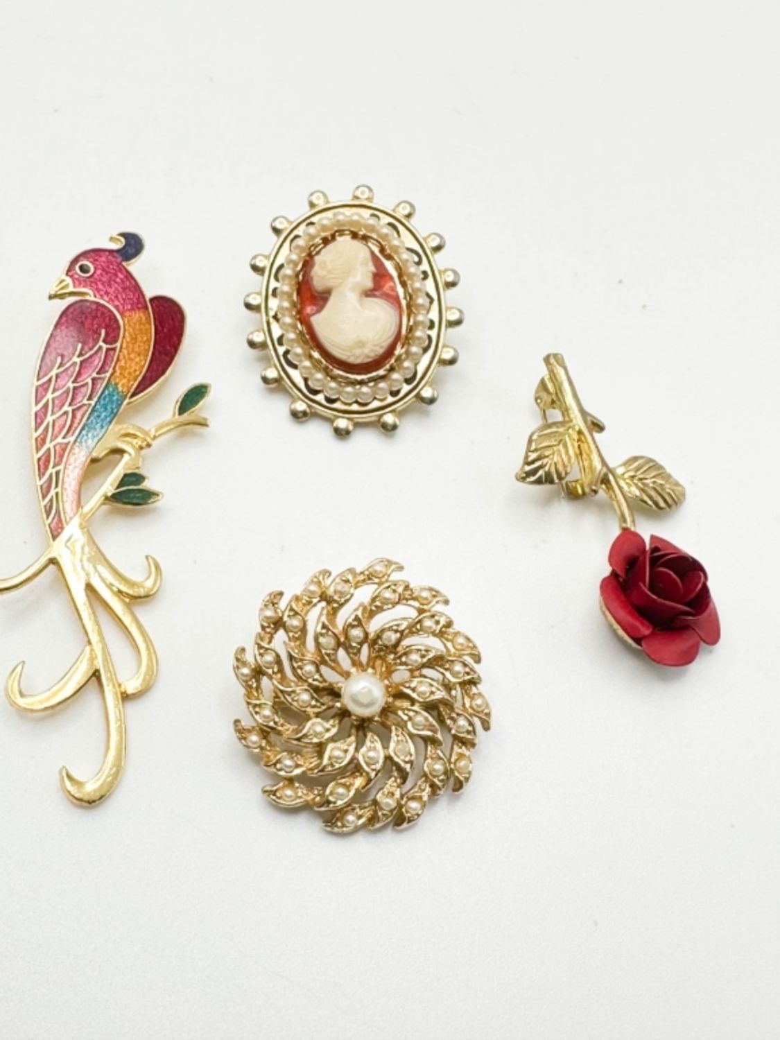 CLOISSONE AND MORE BROOCHES , CAMEO, SWIRLM ROSE PIN