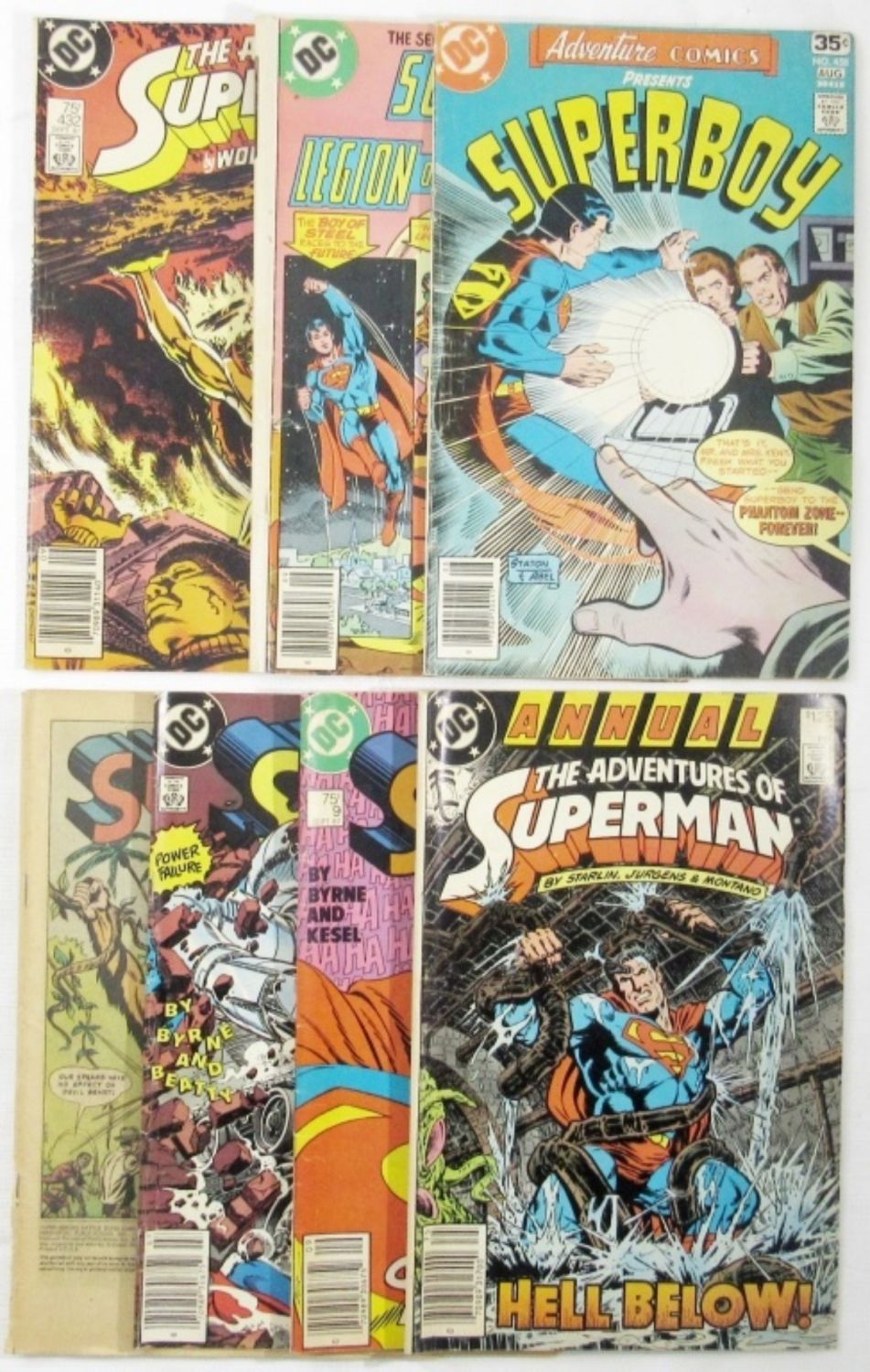 1978 #458 SUPERBOY, 1979 #255 SUPERBOY LEGION OF SUPER-HEROES, 1987 #432 SUPERMAN, 1987 #1 ANNUAL SUPERMAN, 1987 #9 SUPERMAN, 1988 #19 SUPERMAN, 1976 #1 NO COVER SUPER-HEROES BATTLE SUPER-GORILLAS