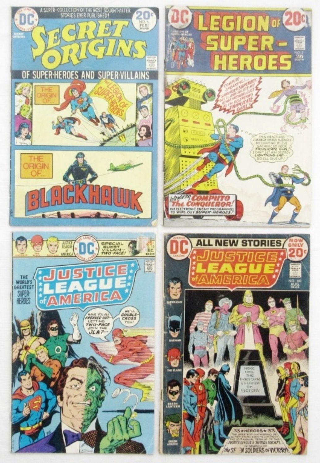1972 #100 JUSTICE LEAGUE, 1975 #125 JUSTICE LEAGUE, 1973 #3 LEGION of SUPER-HEROES, 1974 #6 SECRET ORIGINS