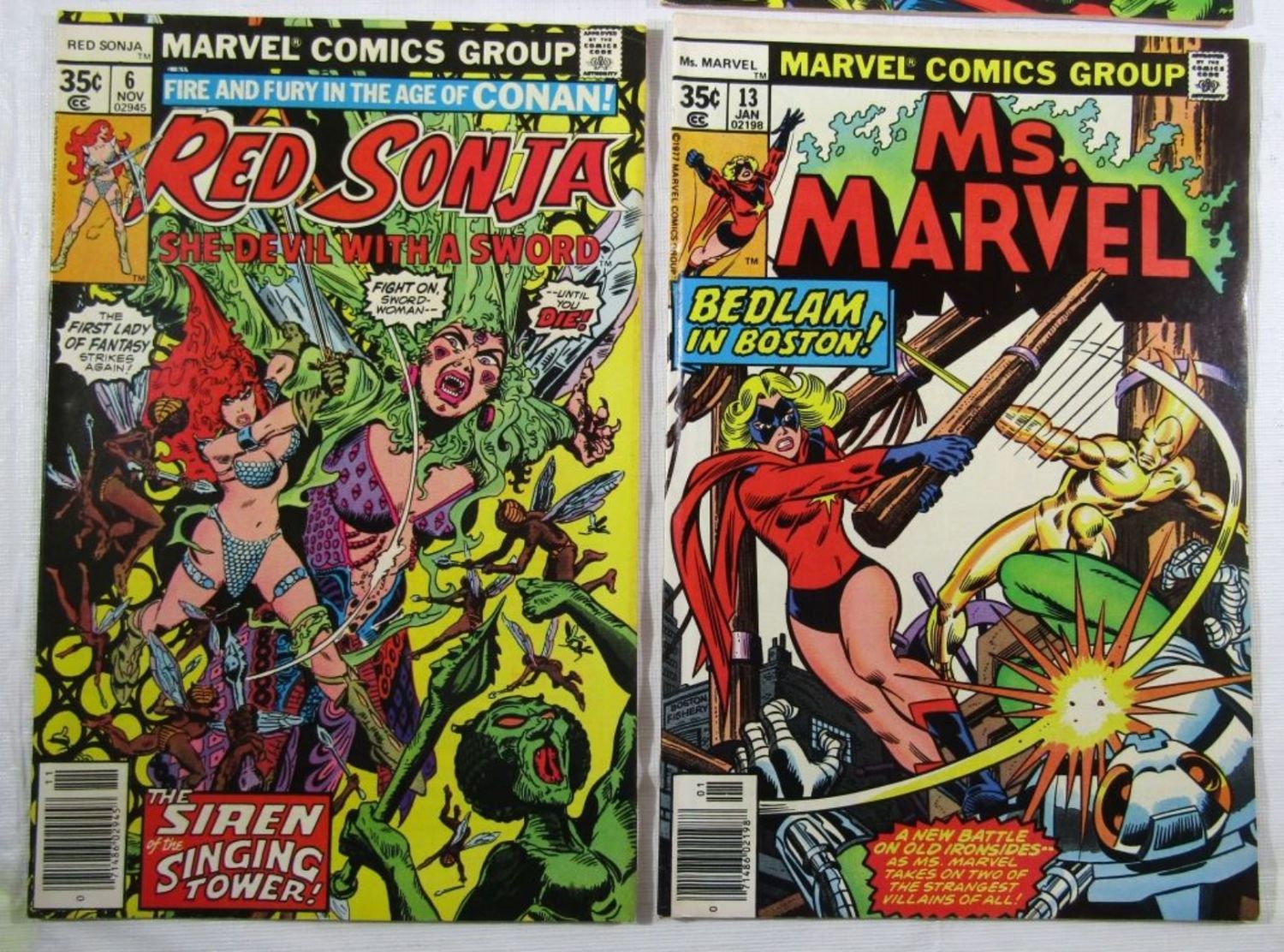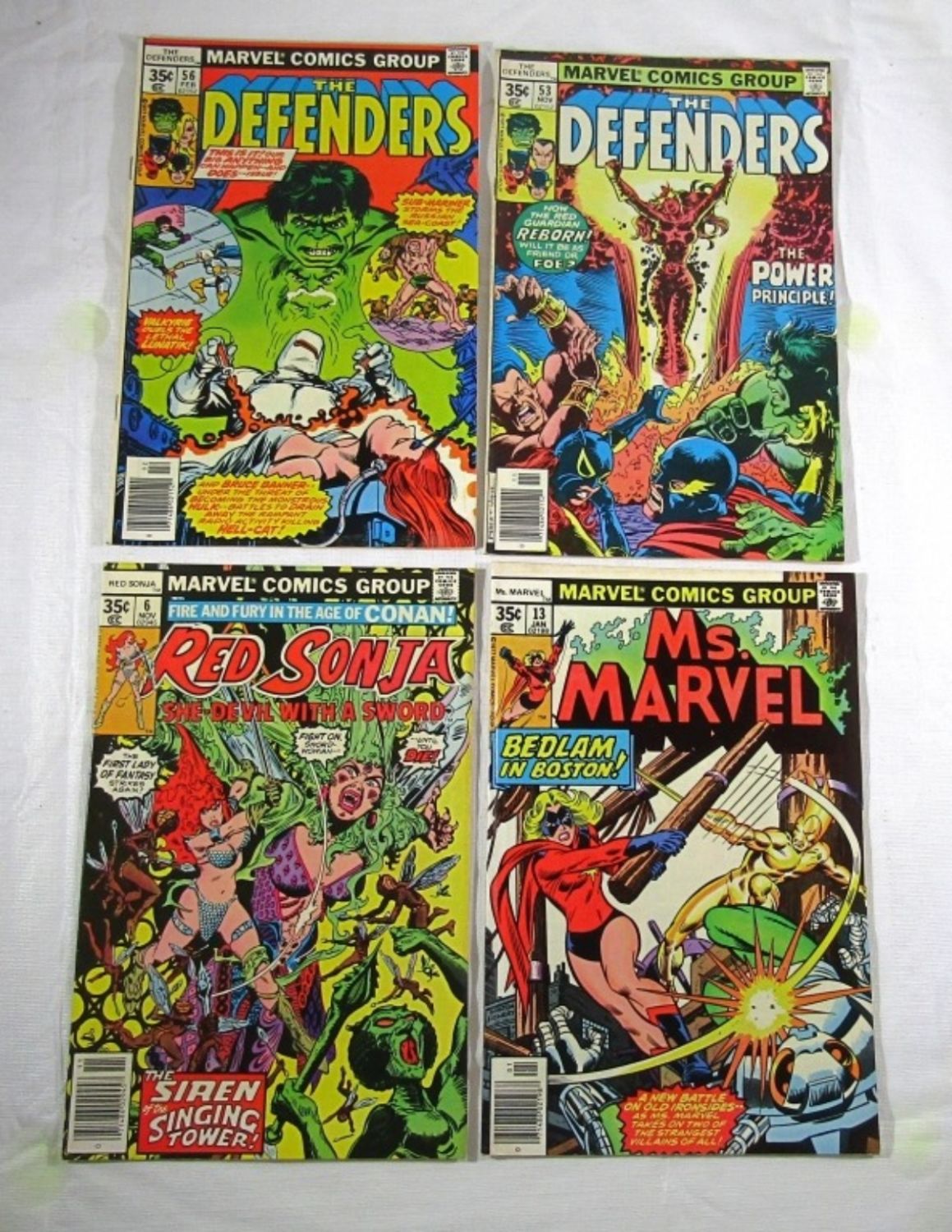 1977 #53 & 1978 #56 THE DEFENDERS; 1977 #6 RED SONJA; 1978 #13 MS. MARVEL – NICE CONDITION