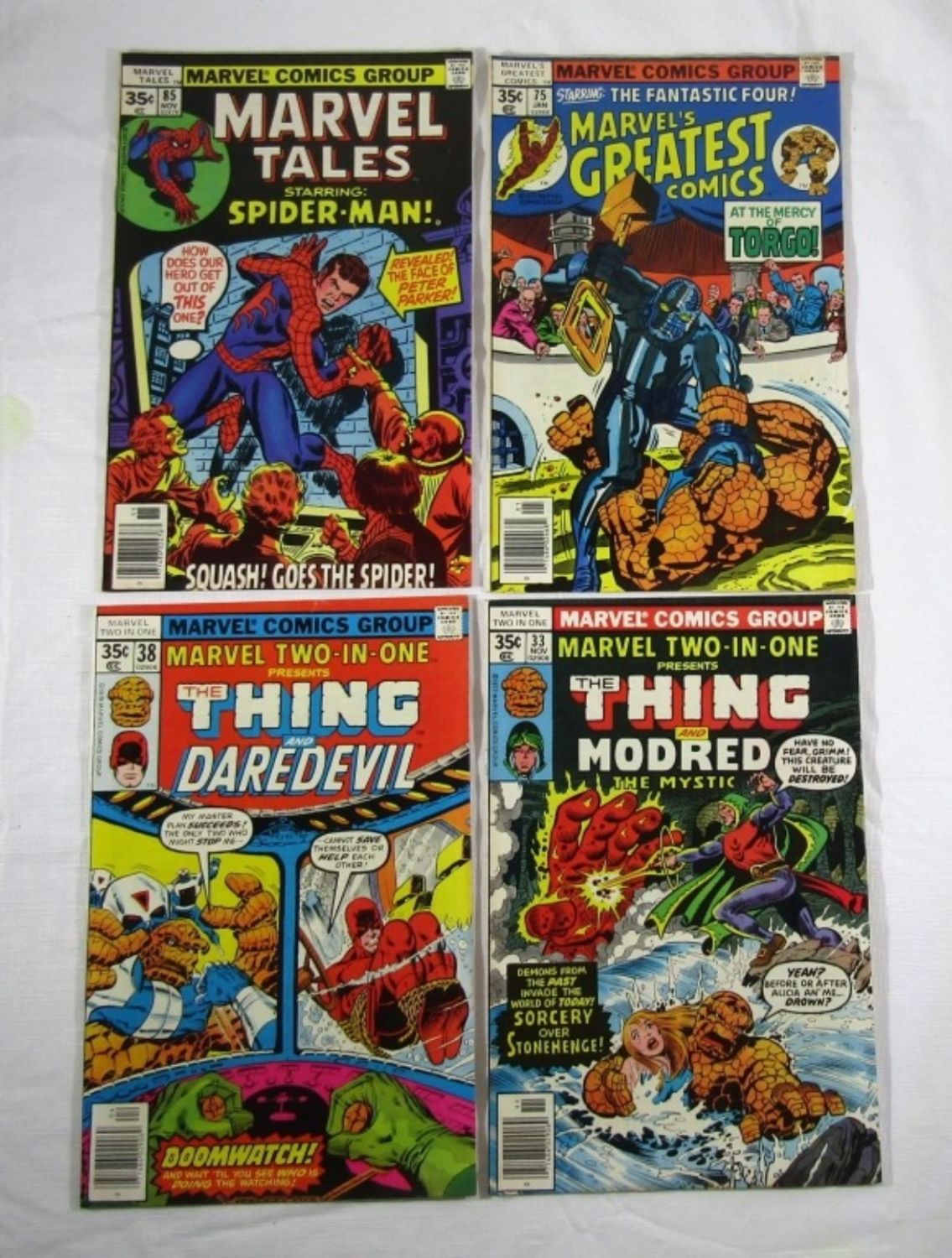 1977 #33 THE THING, 1978 #38 THE THING, 1978 #75 MARVEL’S GREATEST COMICS, 1977 #85 MARVEL TALES – ALL VERY NICE CONDITION