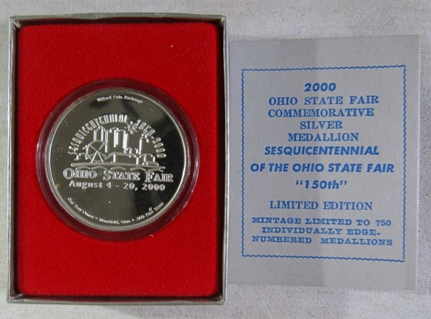 SESQUICENTENNIAL OF THE OHIO STATE FAIR & 75TH ANNIVERSARY OF ALL-OHIO STATE FAIR BAND. IN GIFT BOX WITH COA.