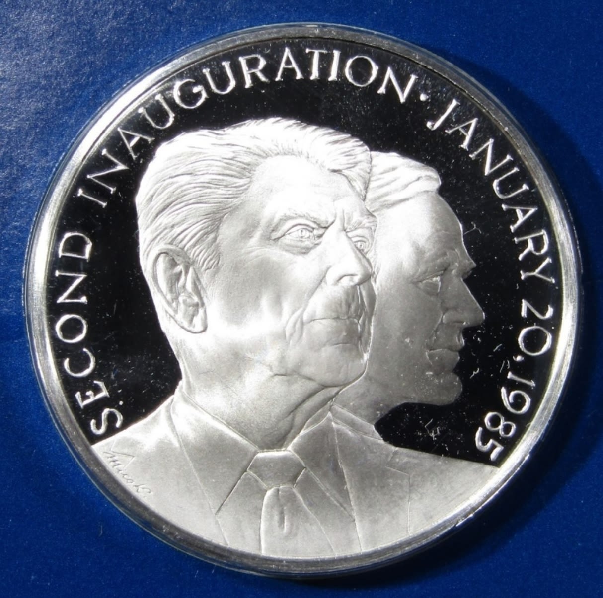 REAGAN & BUSH. THE OFFICIAL INAUGURAL MEDAL LIMITED EDITION PROOF. IN DISPLAY CASE. THE FRANKLIN MINT.