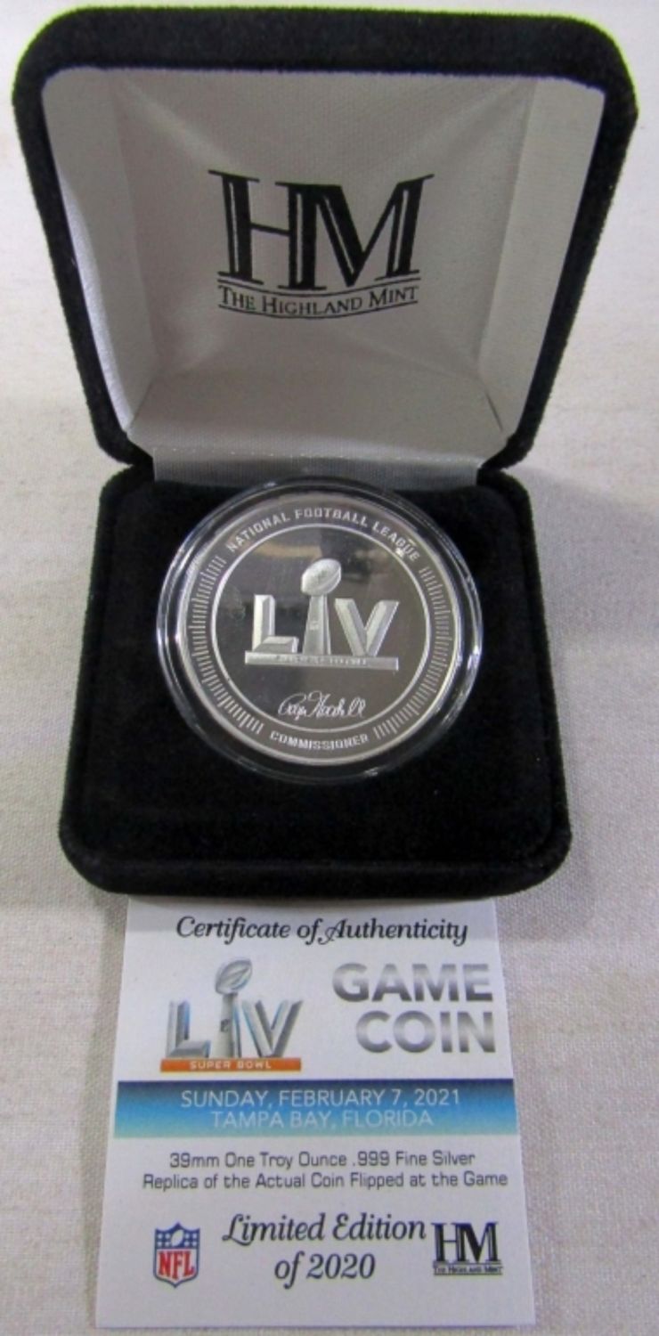 2021 BUCCANEERS VS CHIEFS REPLICA OF ACTUAL COIN FLIPPED AT THE GAME. IN BOX WITH COA. HIGHLAND MINT