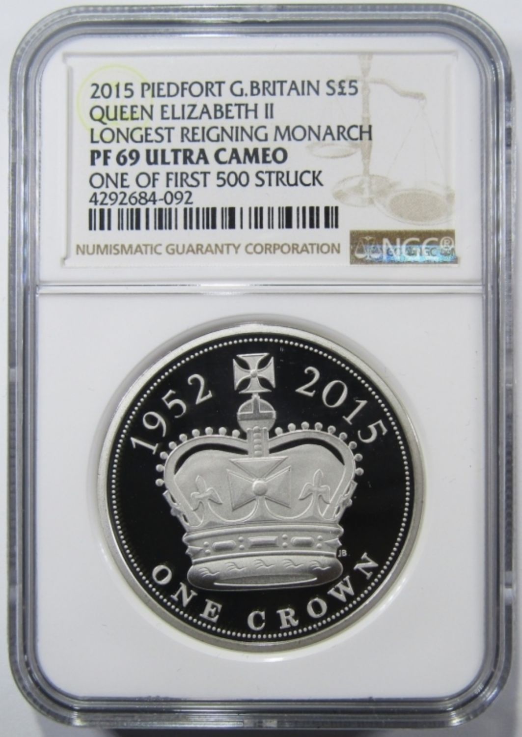56.56 GRAMS .925 SILVER QUEEN ELIZABETH II LONGEST REIGNING MONARCH. ONE OF FIRST 500 STRUCK. IN DISPLAY BOX WITH COA.