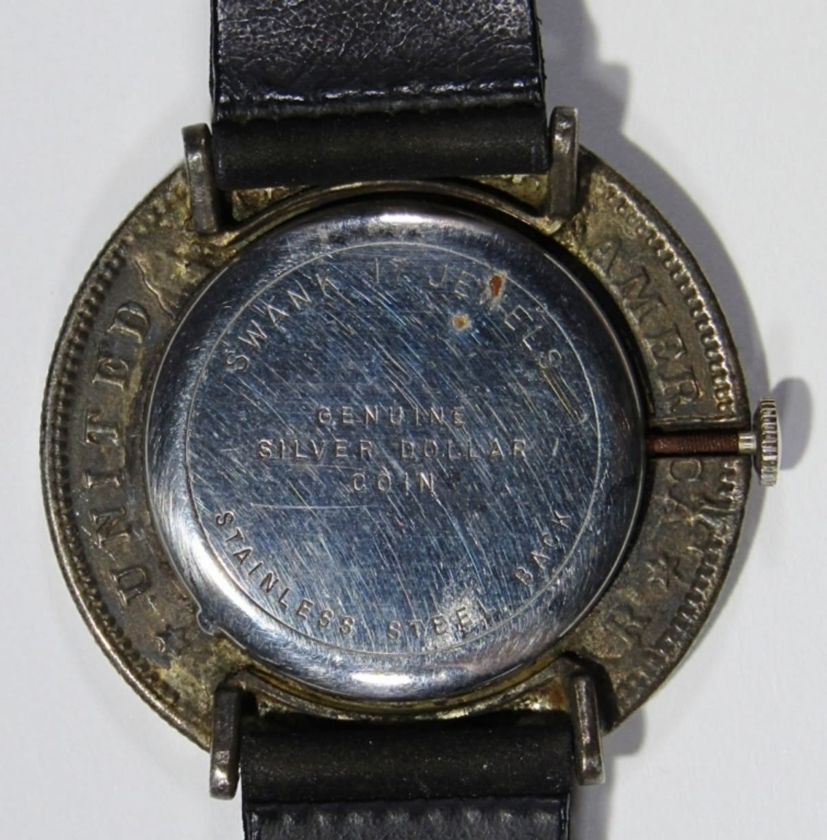 VINTAGE SWANK 17 JEWELS WATCH WITH 9 INCH DUPONT CORFAM BAND. MISSING HOUR HAND. UNTESTED.