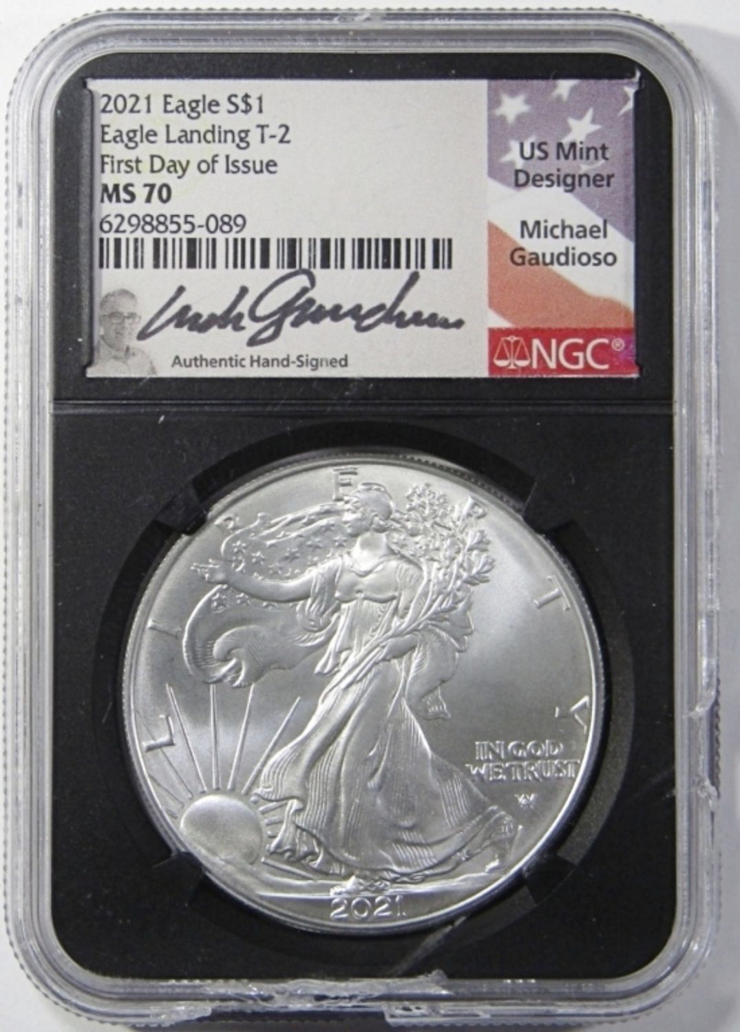 FIRST DAY OF ISSUE, MICHAEL GAUDIOSO SIGNED. DAMAGED SLAB.