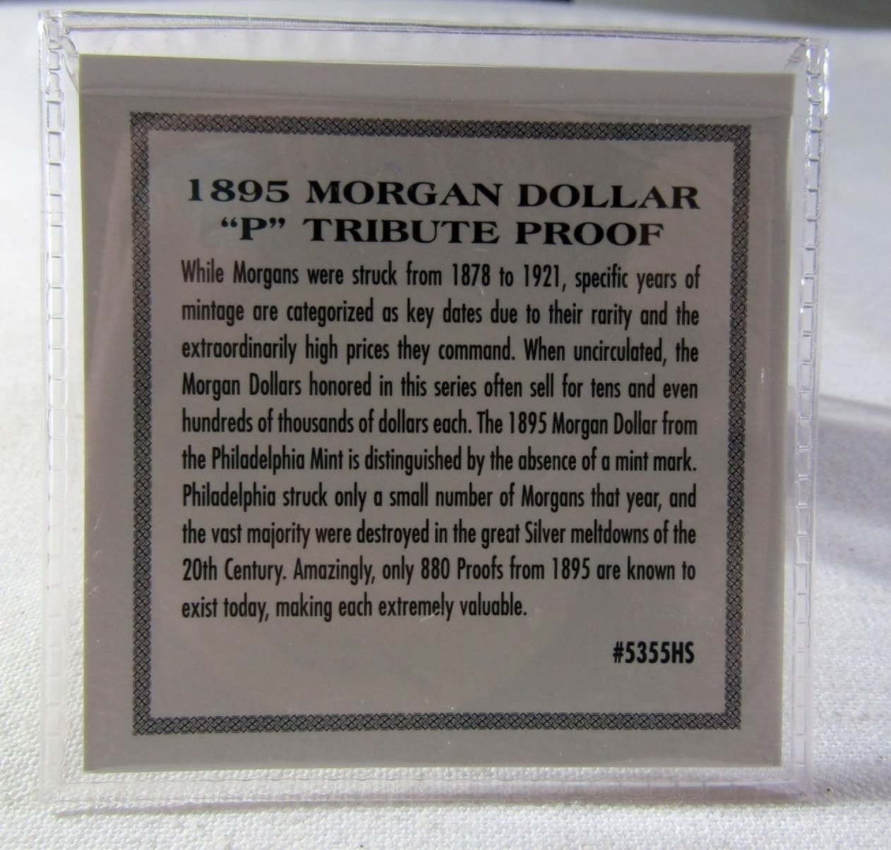 1895 MORGAN DOLLAR “P” TRIBUTE PROOF. LAYERED IN .999 SILVER.