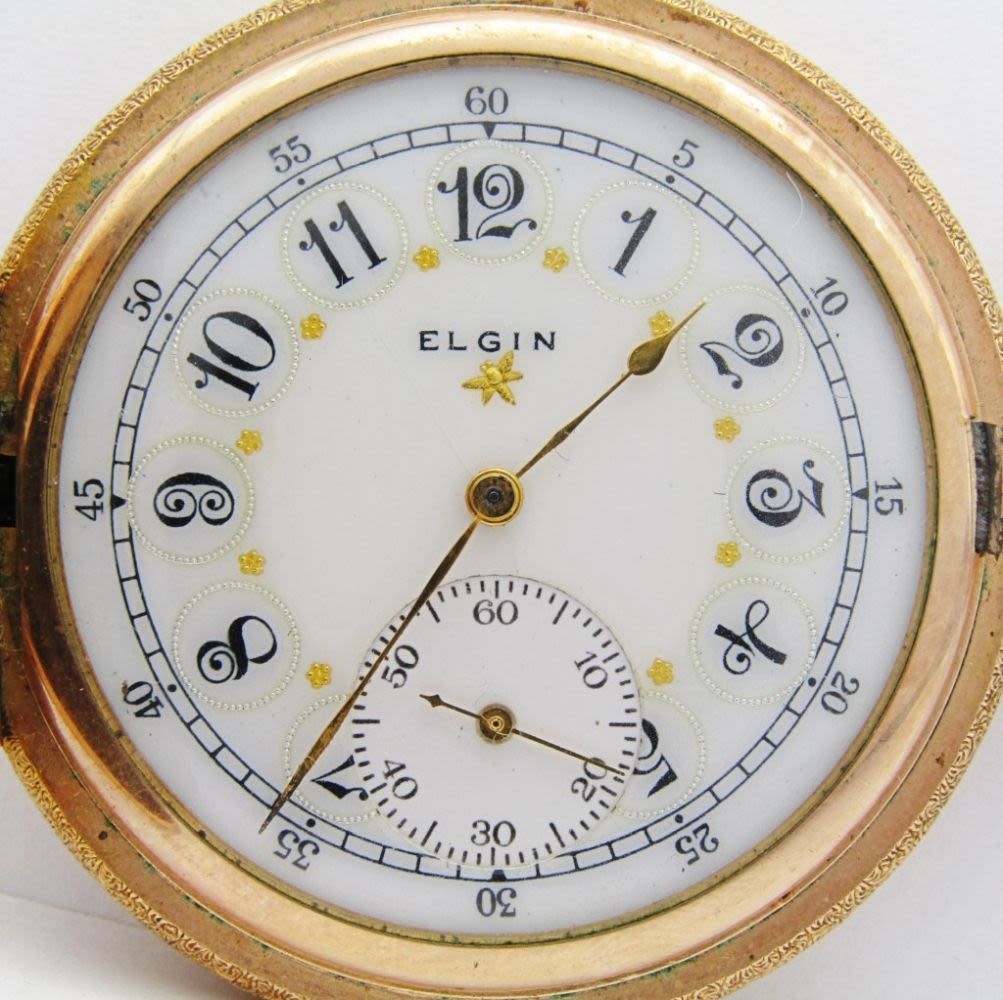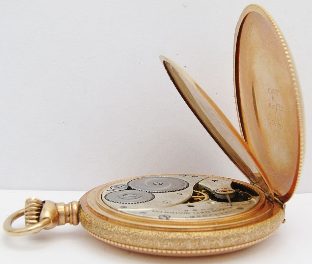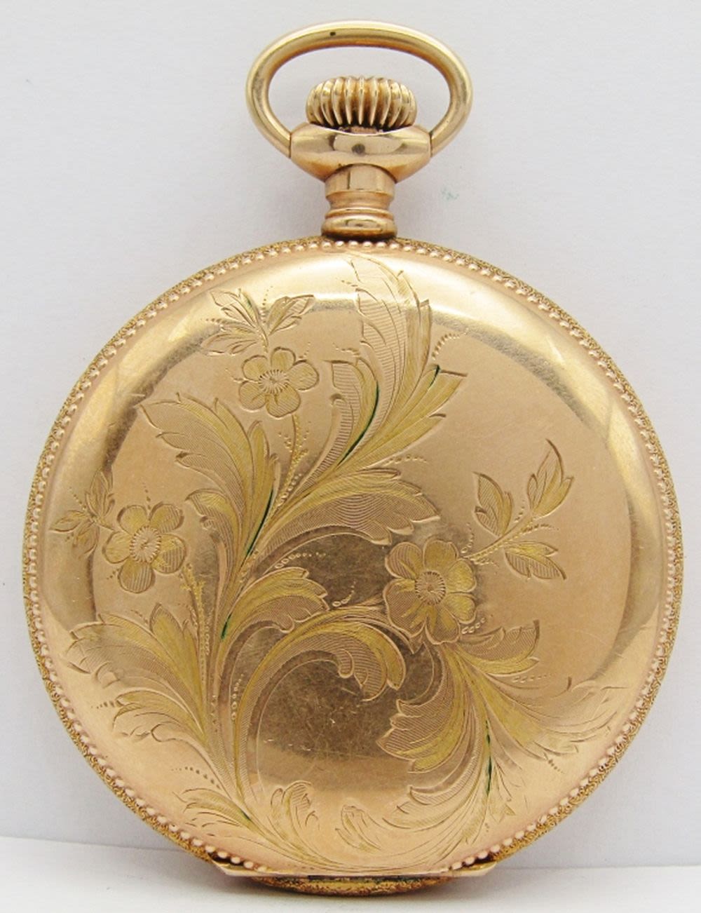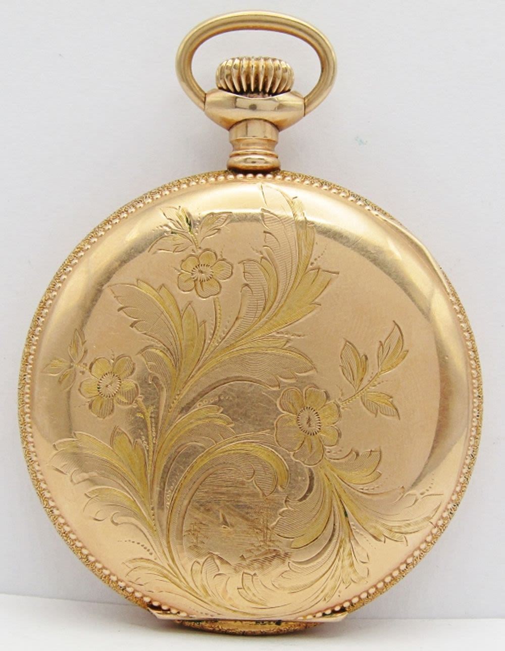 Fancy Porcelain Dial; Yellow Gold Filled Hunting Case With Floral Pattern