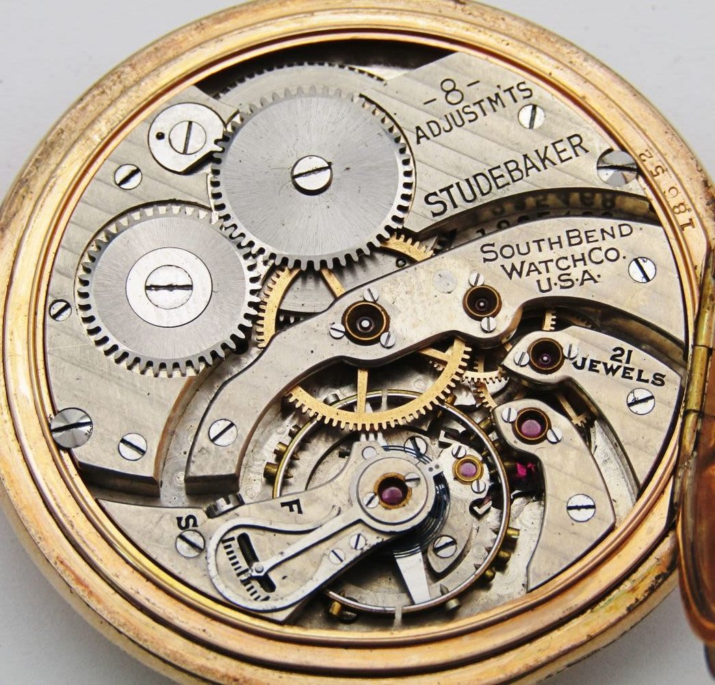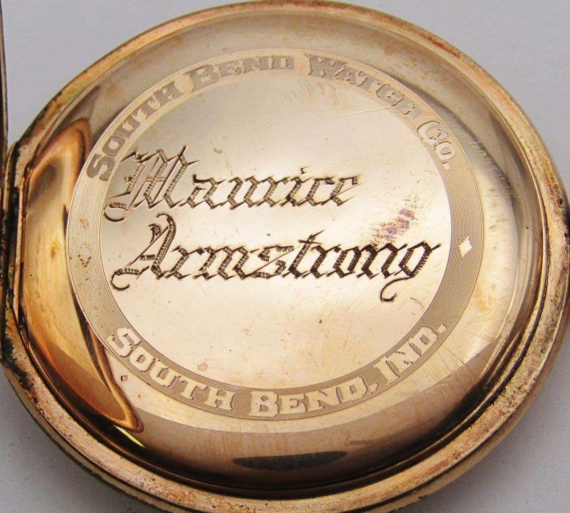 Painted Metal Dial; Yellow Gold Filled South Bend Marked Double Hinged Back Case