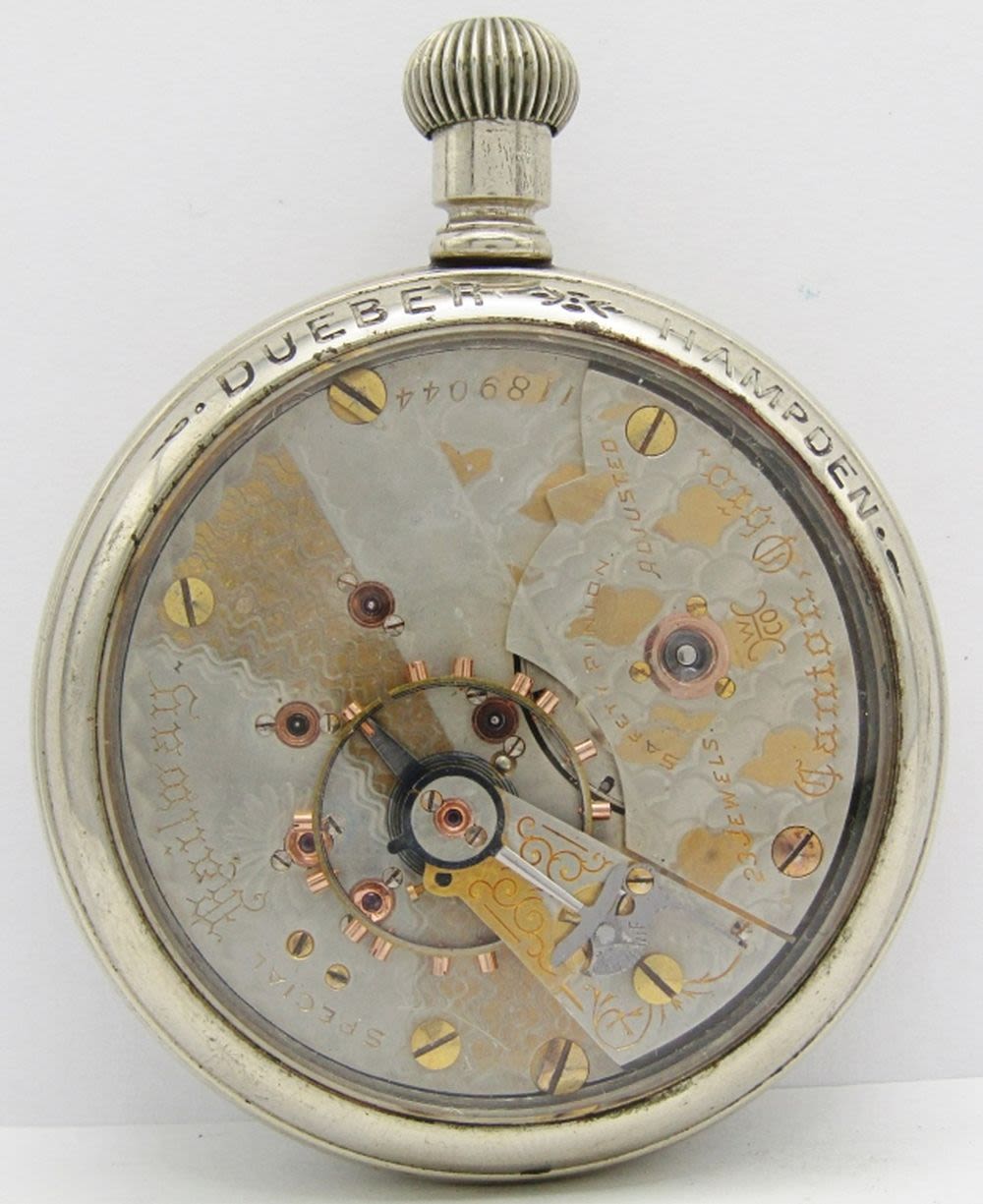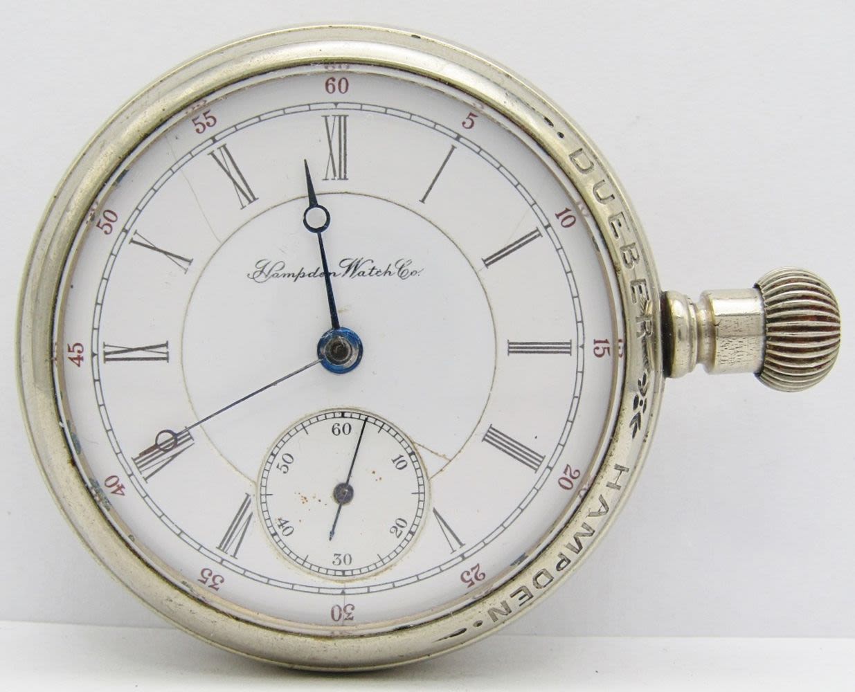 Hunting Case Movement; Double Sunk Porcelain Dial; Hampden Marked Nickel Display Shipping Case