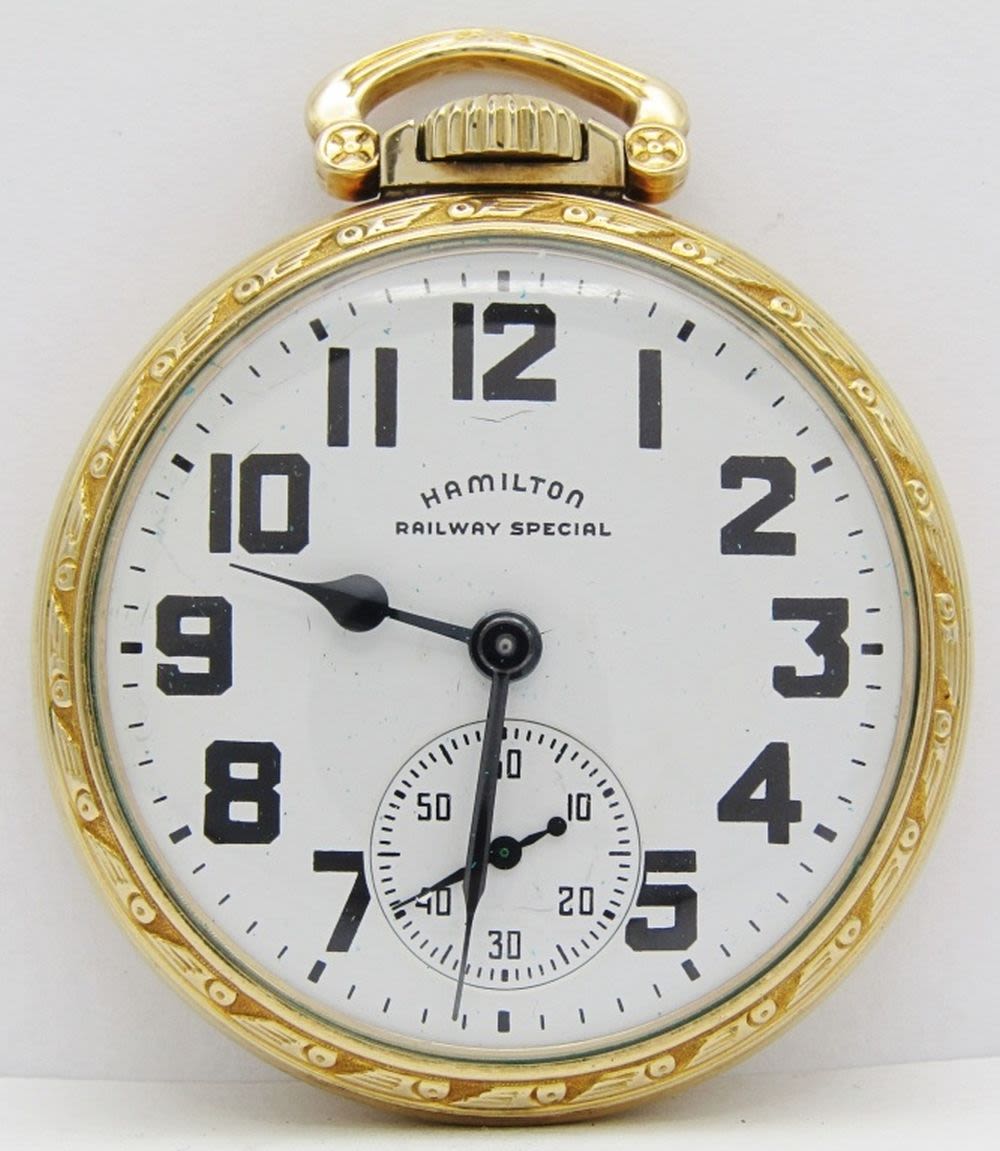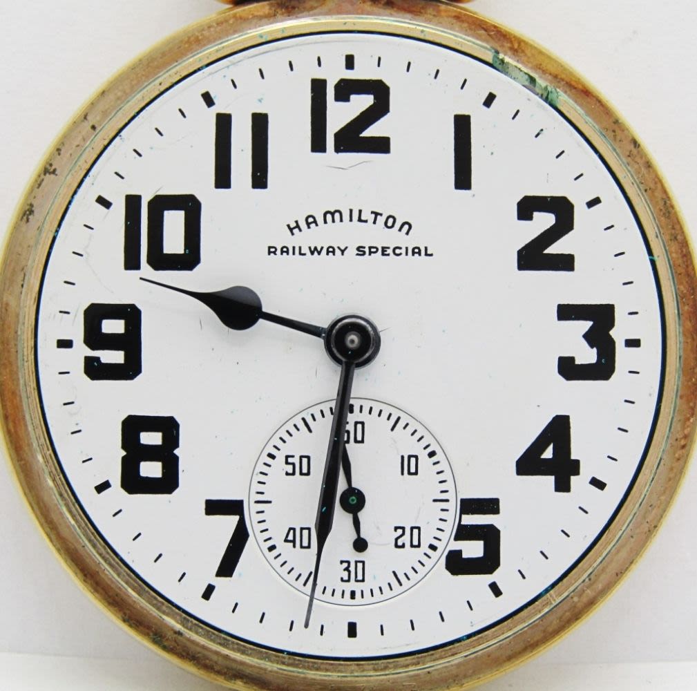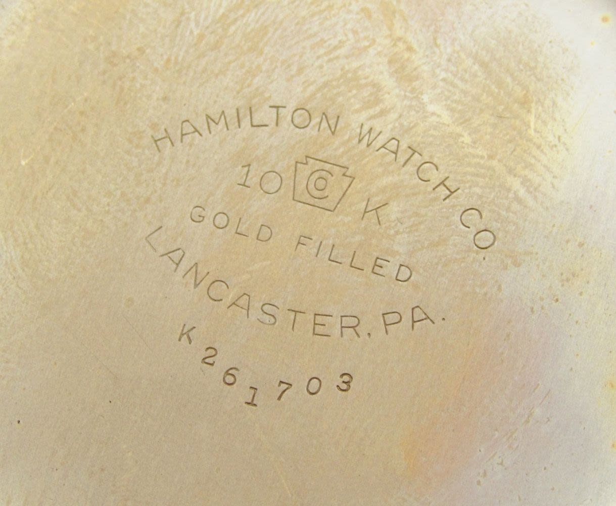 Single Sunk Melamine Railway Special Dial; Yellow Gold Filled Screwback Hamilton Marked Case