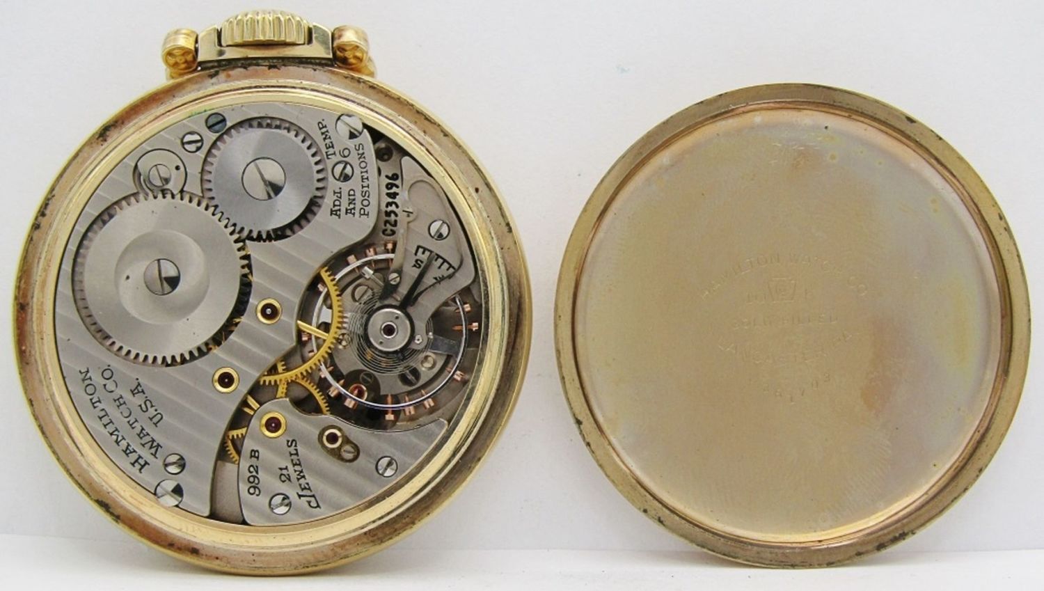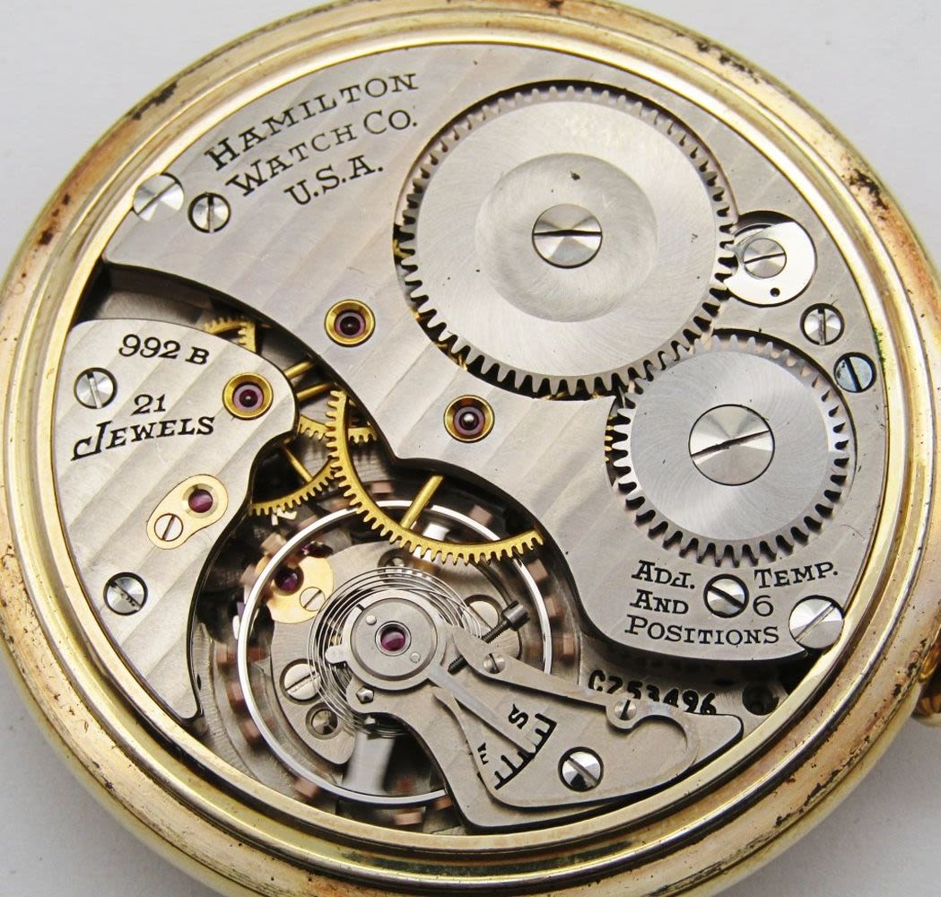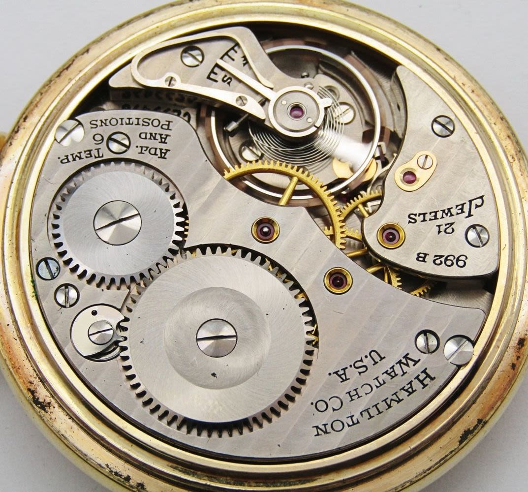 Single Sunk Melamine Railway Special Dial; Yellow Gold Filled Screwback Hamilton Marked Case