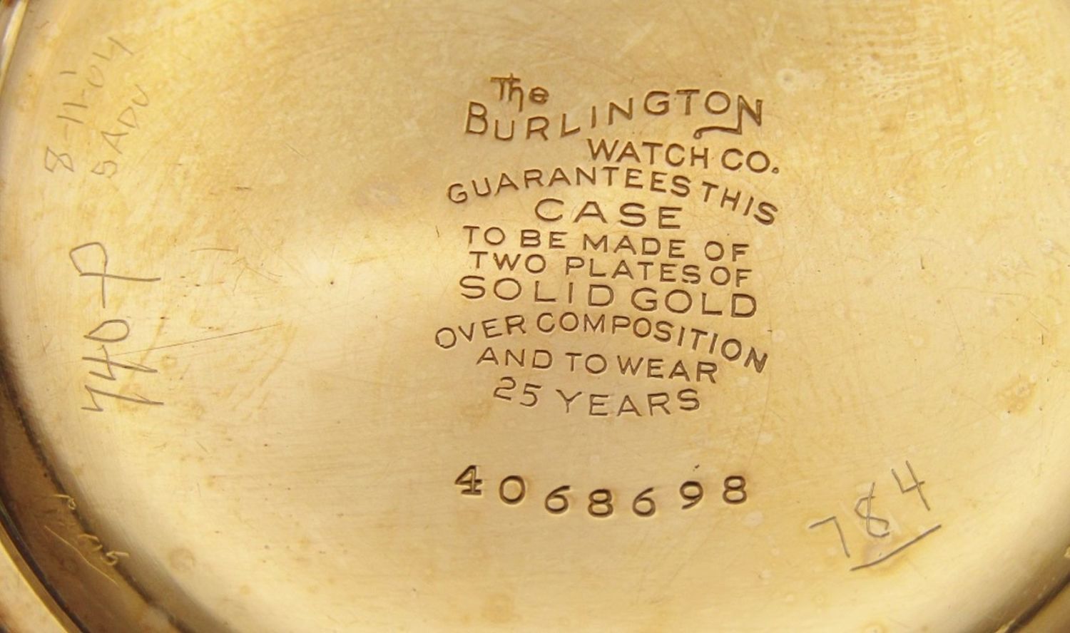 Double Sunk Montgomery Porcelain Dial; Yellow Gold Filled Burlington Marked Screwback Case